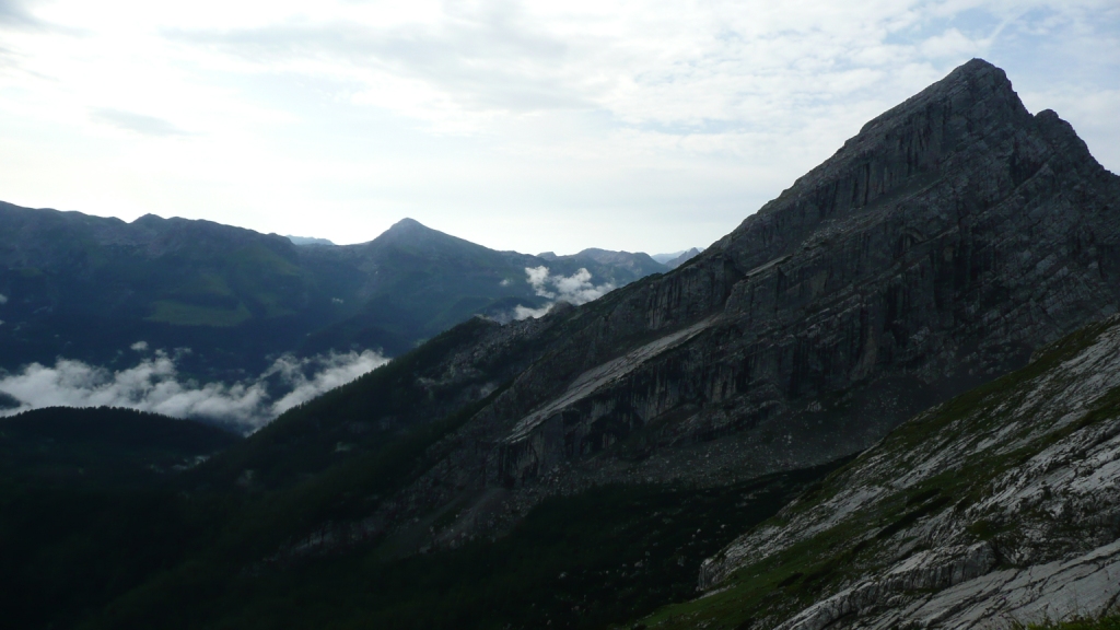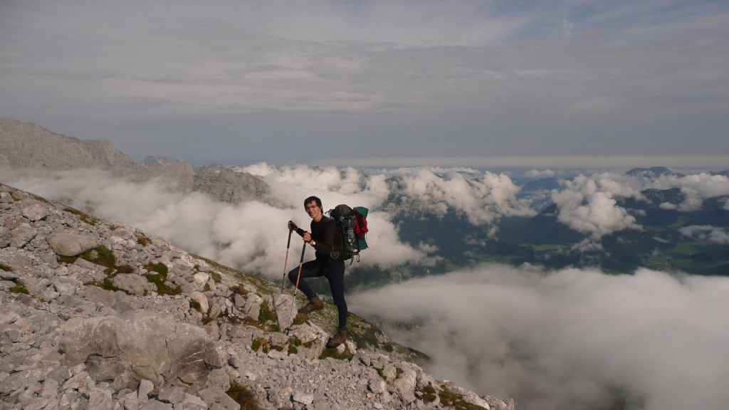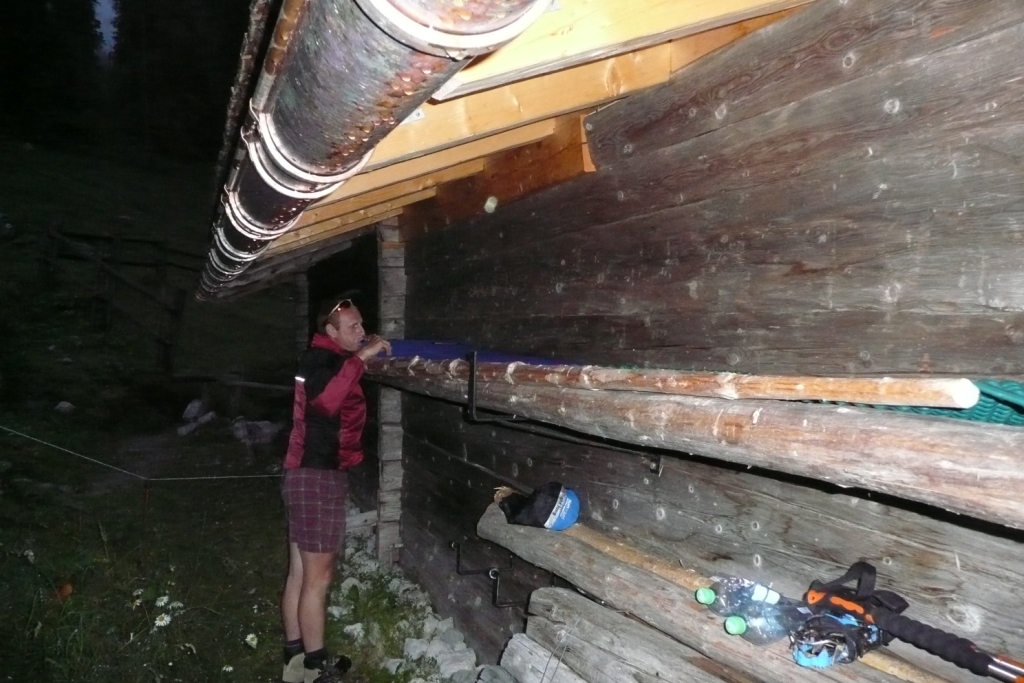 Presne podľa itinerára starostlivo prichystaného Spyrosom sme si zrána prezreli Salzburg, potom jazero Königssee a presunuli sa do Berchtesgadenu, čo je naším východiskom. Dnes stačí vyraziť neskoro poobede. Na pláne máme len dôjsť na chatu Watzmannhaus 1930m, kde prespíme a ráno uskutočníme náš traverz. Na chatu treba nastúpať asi 1300 metrov prevýšenia. Robo a Spyros idú úplne naľahko, my s Janom sme v rámci šetrenia, potom čo Jana okradli v Chorvátsku, keď bol na ceste do Azerbajdžanu a ja rekonštruujem byt, pribalili aj spacaky, karimatky a varič. Prespime niekde cestou pri ovciach a ráno chalanov dobehneme. Pomaly naberáme výšku a nad Bavorskými Alpami sa sťahujú stále hustejšie mraky. Prečkali sme dáždik v kôlničke na salaši a pokračovali ďalej. Pomaly sa schyľuje k večeru a my s Janom sa už obzeráme, kde by sme zložili naše mladé kosti. A nádherné miestečko, ako je v Alpách zvykom, sa našlo. Nádherný opustený salaš obohnaný funkčným elektrickým plotom je pre nás ako stvorený. Nemáme Alpenverein, takže noc na Watzmannhaus by nás vyšla na 20€. Strecha nášho salaša má veľký previs a pod previsom je naukladané drevo nádherne kryté pred dažďom. Tu sme si navarili, pospomínali na naše skoršie alpské dobrodružstvá, baby sme porozoberali a pomaly aj ľahli spať.