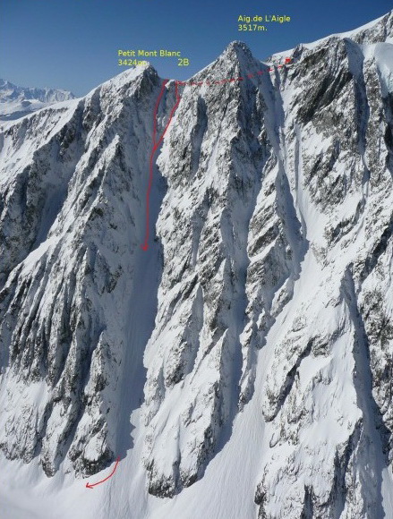 Vo svojom denníku má Heini zaznačené: Petit Mont Blanc, Nordostwand- Culoir, Wandhohe 900, 40-50 Grad, 1. Skibefahrung am 14. juni 1974, allein