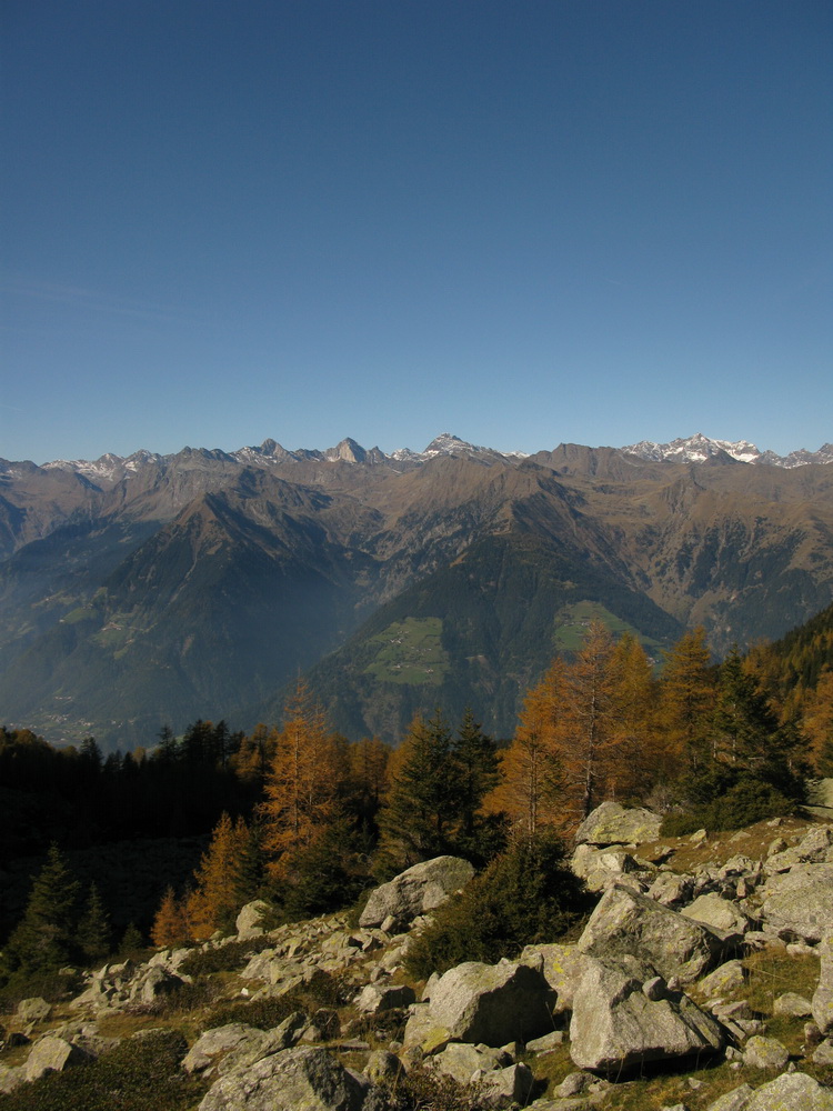 Hovoriť o Ifingeri (2581m.) ako o dominante nad Meranom je nezmysel. Kopce sa tu vypínajú na všetky strany. Len dole po prúde rieky Etsch v smere na Bolzáno je kúsok otvorenej doliny.