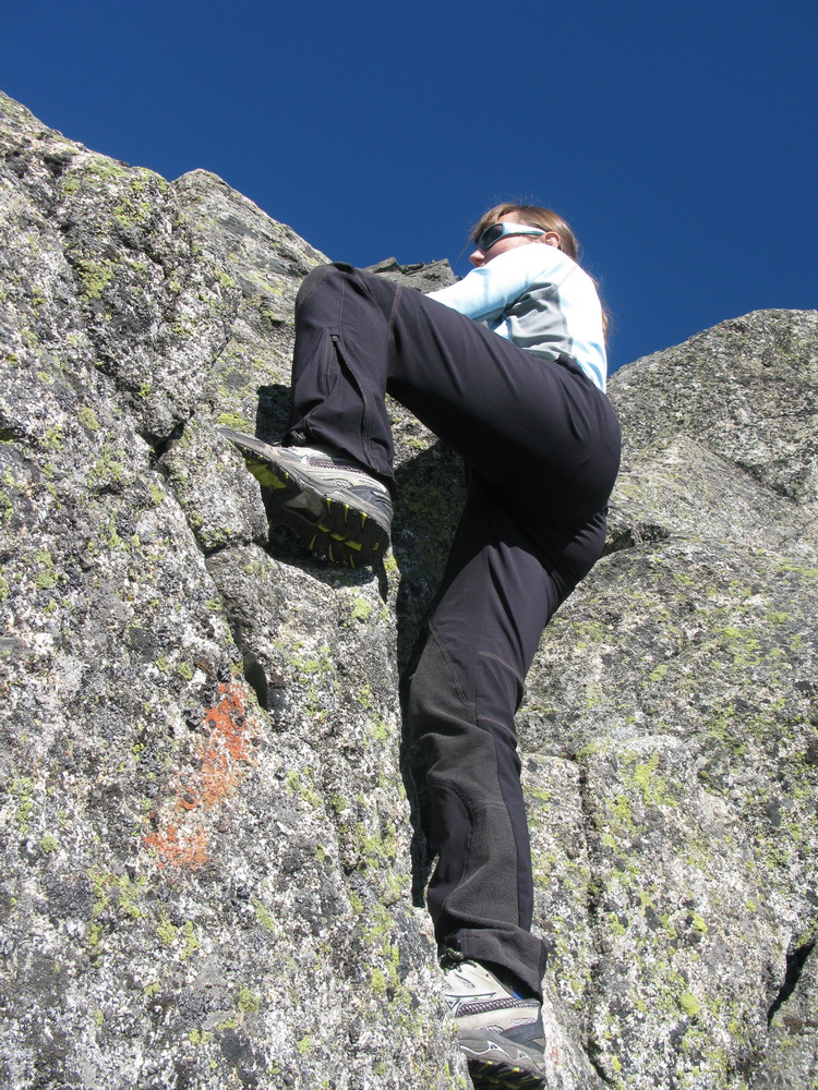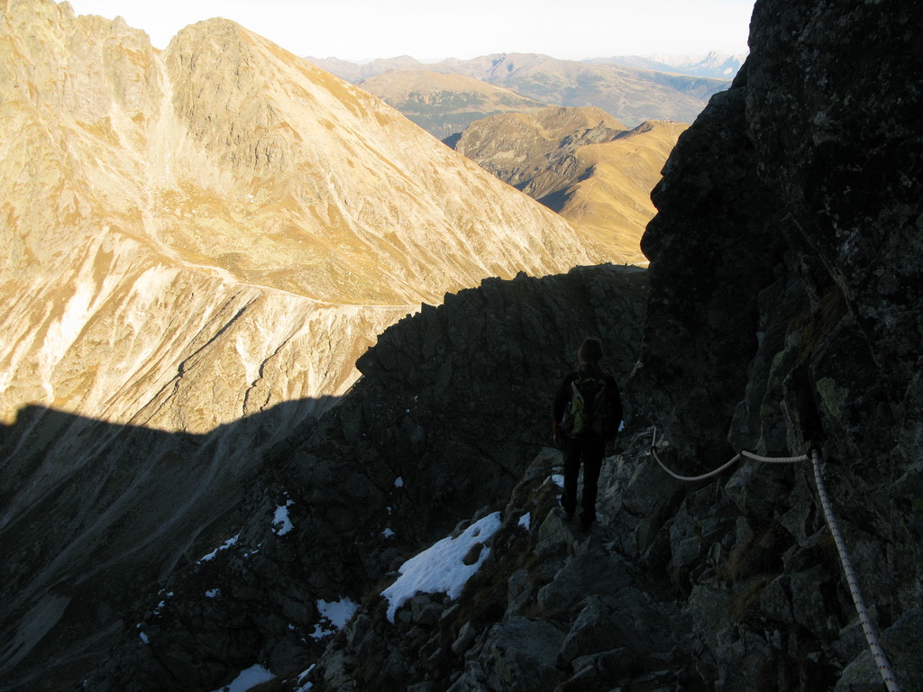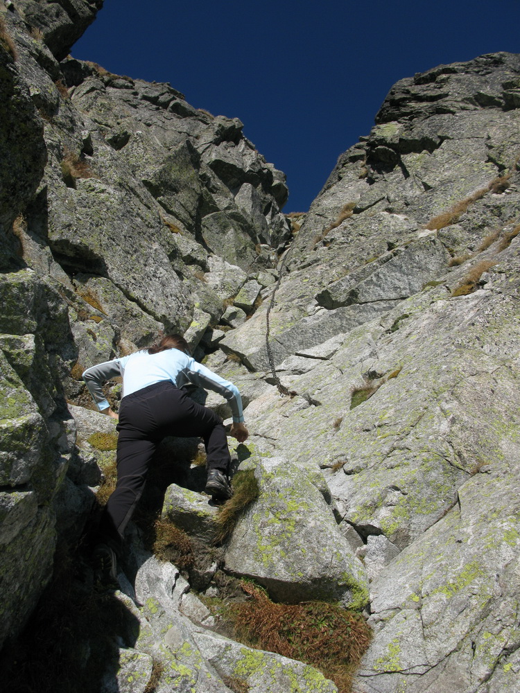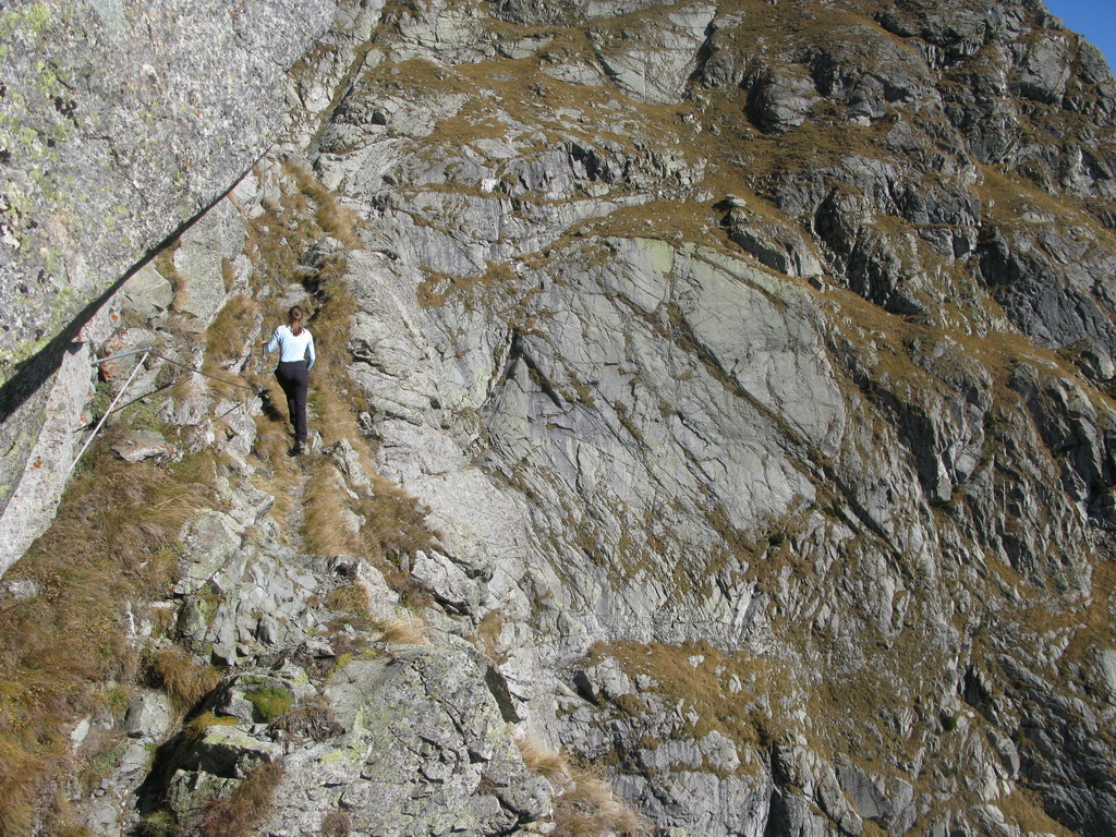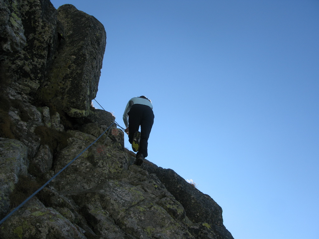 "Nejde tam oficiálna značka, ale je to taká tajná trasa pre domácich. Je čiastočne zaistená oceľovým, čiastočne konopným lanom, miestami treba liezť nezaistený. Obtiažnosť cca 2+." Vysvetľuje Jens.