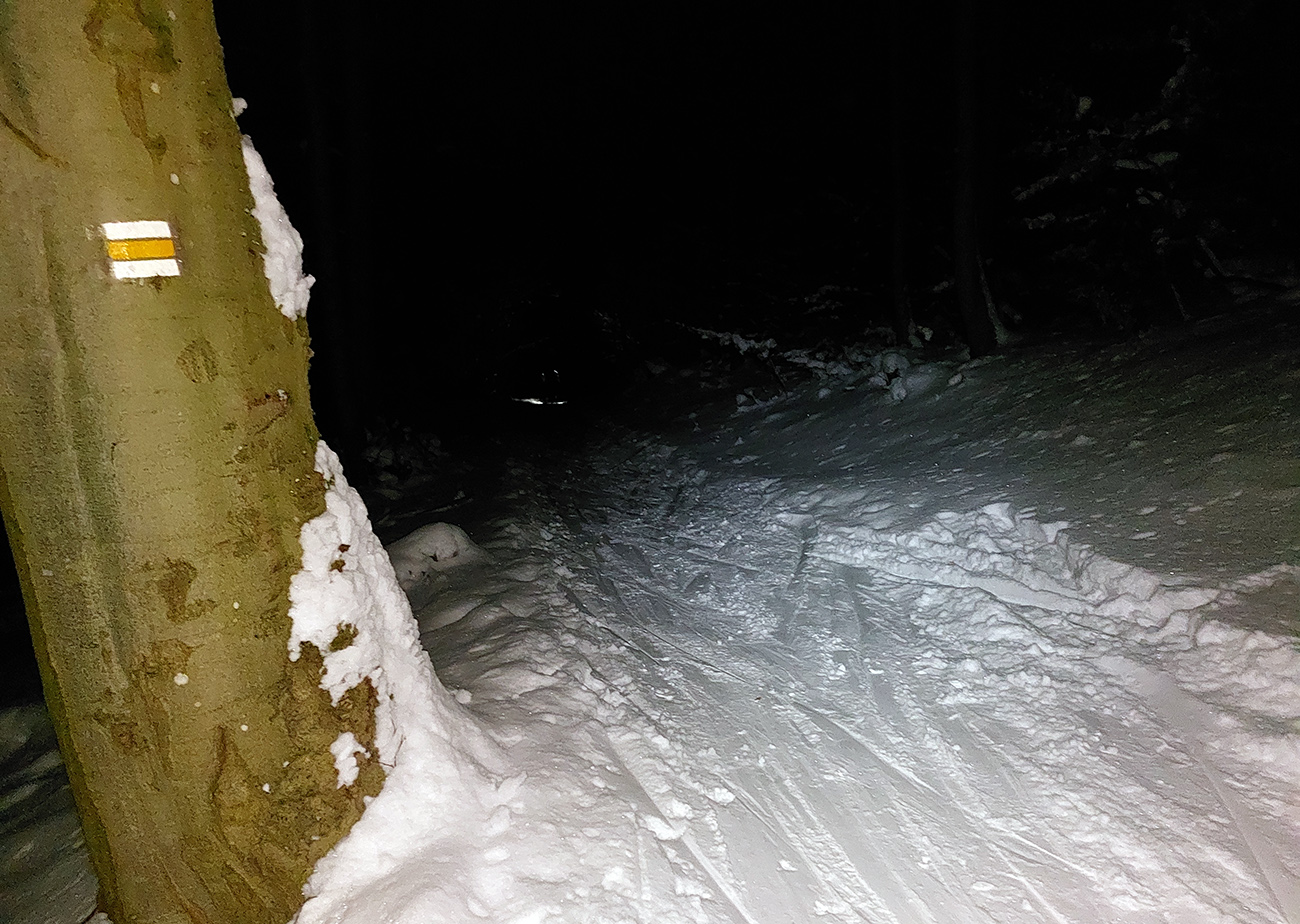 No kedy sa má poctivý robotný ľud v týždni dostať na pásy? Len po robote. Takže teraz rovná sa za tmy. Ale „na tri krále o krok dále“, tak aspoň časť výšľapov za vidna sa zadarila, lebo štart z domu po tretej a do lyží skok o pol štvrtej, dajme tomu. V oboch prípadoch, len ten Lysec bol ešte pri -10 stupňoch a jasnej oblohe, pri výstupe na chatu pod Chlebom (lebo vyššie sme nešli) už popŕchalo a zahmlievalo. A každý, komu som sa pochválil, hneď sa pýtal, či sa to dá zlyžovať a či trčia kamene a či sa dá od parkoviska (DÁ!!!) a také tie klasické oné... A to som si myslel, že tam už všetci boli. No zjavne len polovica, tak tu je pre tú druhú polovicu pár fotiek a jednoduchý report o stave podkladu. Na ktorý sme síce moc nevideli (lebo čelovky), ale niekomu to možno pomôže. V oboch prípadoch je snehu tak dosť, že pri výstupe už netreba moc pod nohy pozerať, dôležité pre zdravie chlpatých lyží je to smerom dole. A dôležité ešte je aj to, že sme pod Chlebom obnovili tradíciu: