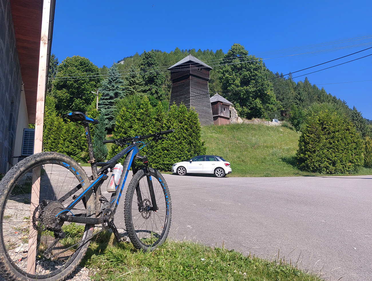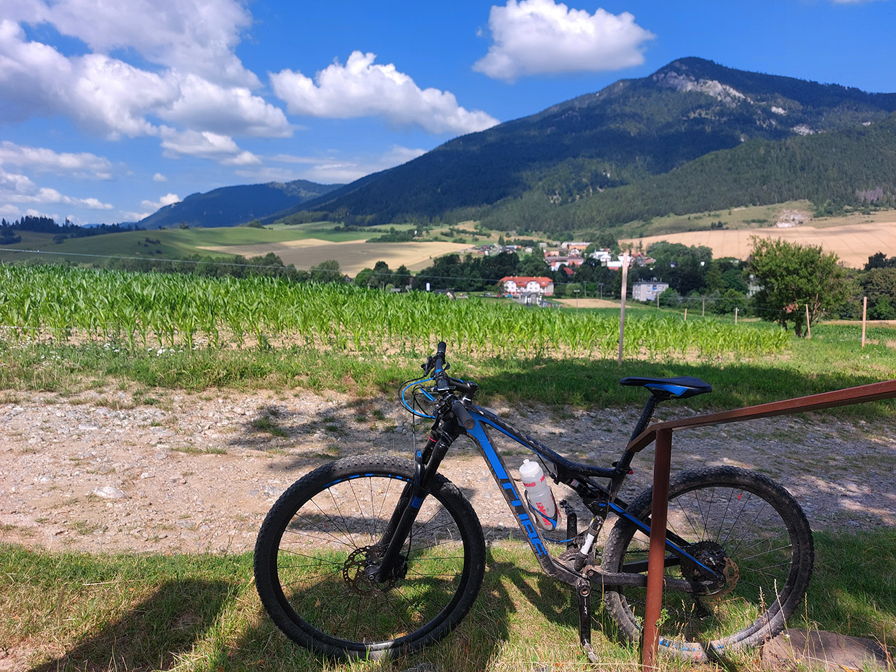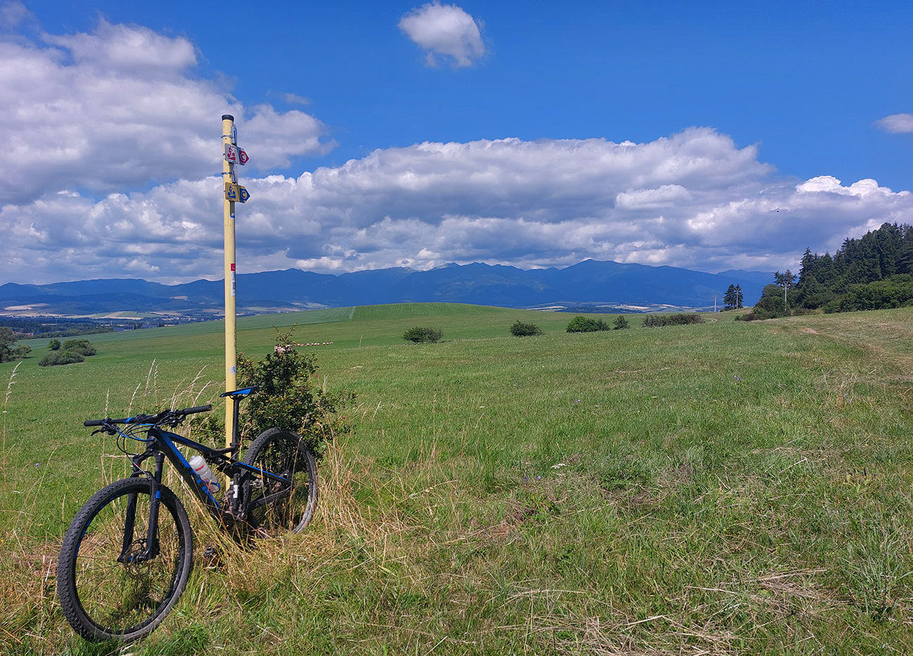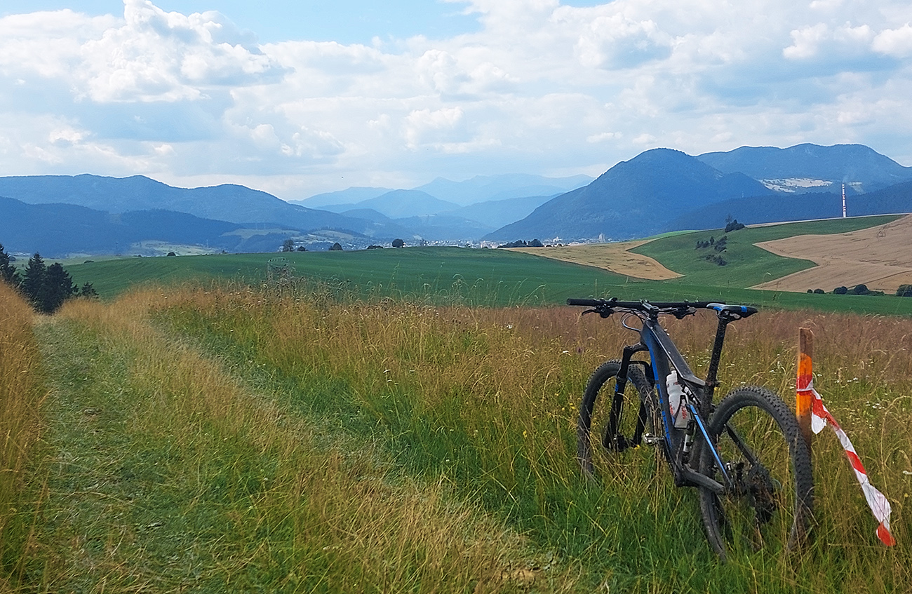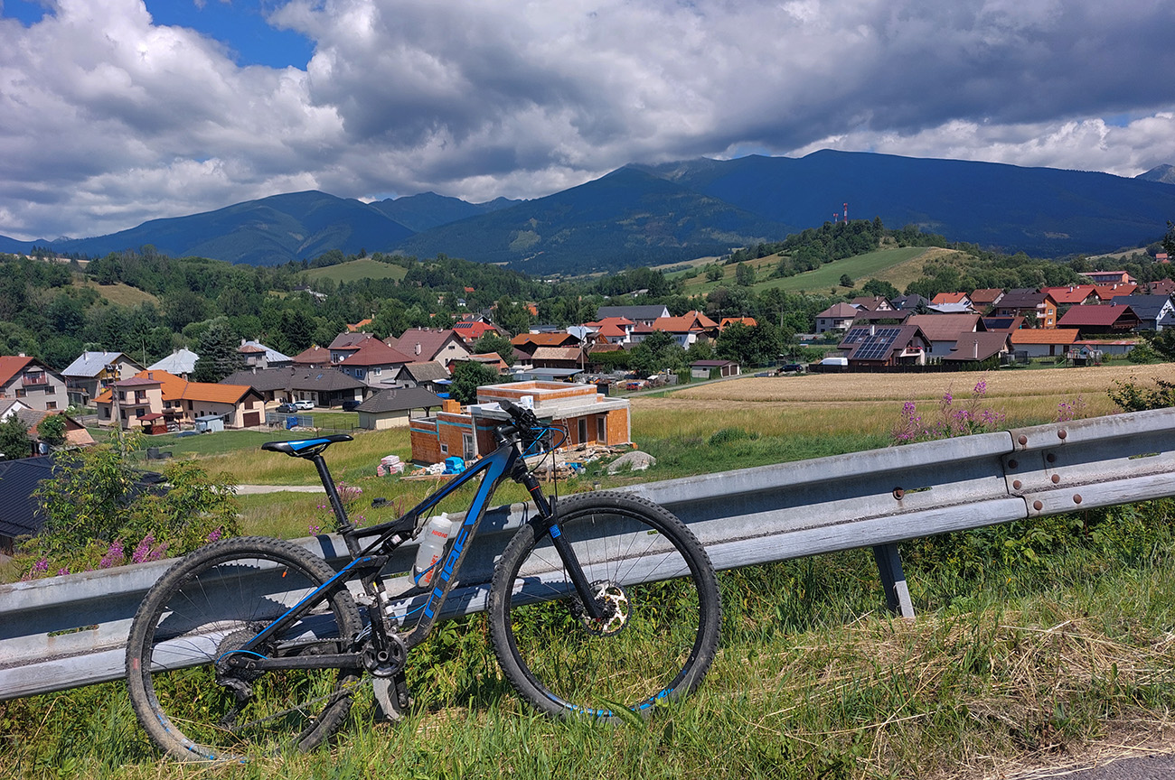 Už som si Maru obišiel na žiletke ( TU ), teraz mi napadlo skúsiť to na horskom. Pekne podhoriami Chočských vrchov, Západných a Nízkych Tatier, nie nutne po cyklotrasách, ale aby to malo logiku, estetiku, a aby z toho vznikol nejaký rozumný okruh. So začiatkom a koncom v RK, aj keď lepšie by bolo ráno začať niekde na opačnom konci, aby slnko na začiatku nesvietilo do očí. Cieľom však nebolo len hlušiť kilometre „do mŕtva“, ale potiahnuť trasu aj po zaujímavých miestach, ktorých je tam samozrejme veľa. Pri klikaní do mapy ma síce trochu prekvapila tá dĺžka, ale zas na dlhé letné dni prečo nie? Po necelých 10 hodinách ukázali teda hodinky 110 km a 2900 výškových nastúpaných metrov (gpx je hore). Super to bolo, na začiatku výživnejšie, ku koncu pohodovejšie a rýchlejšie, len si treba v lete vybrať chladnejší deň, keď majú ovady dovolenku:
