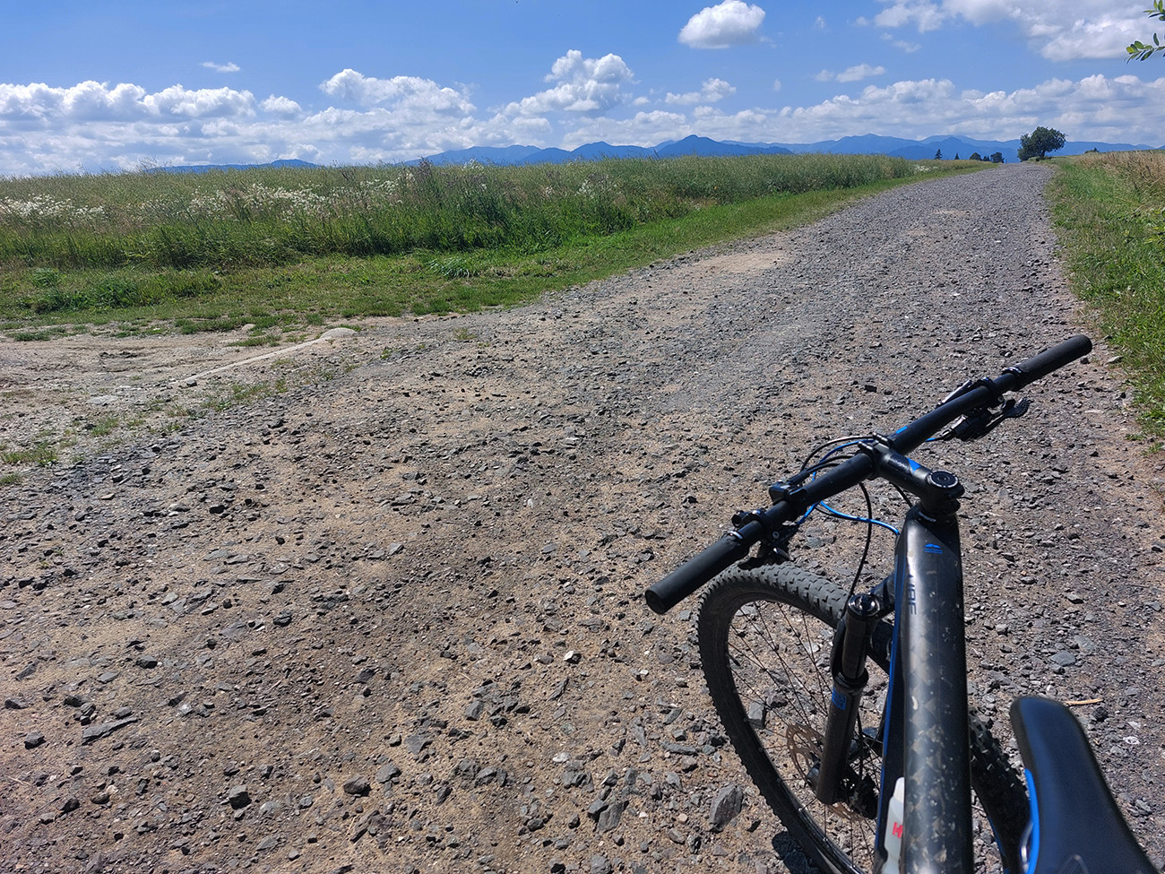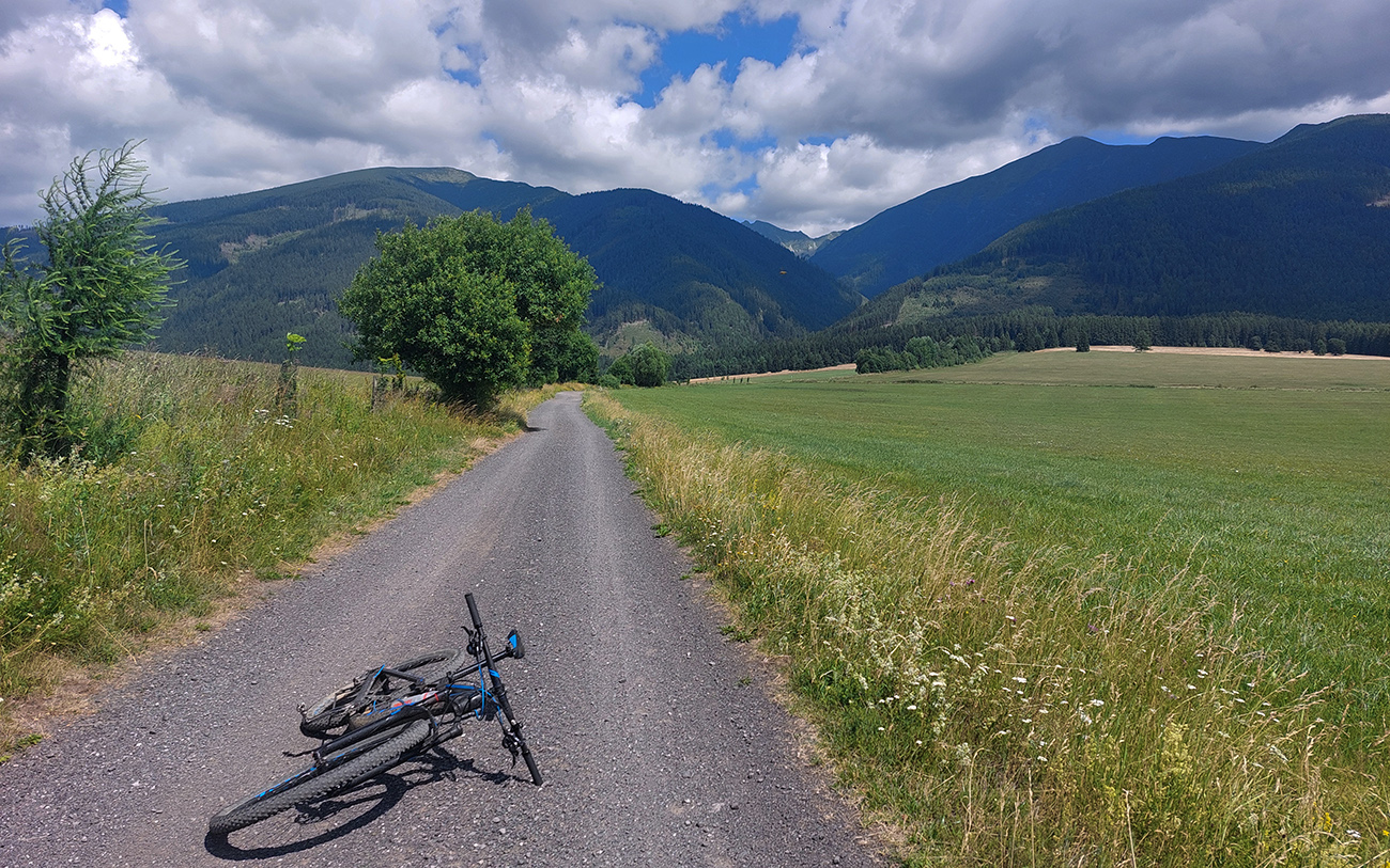 Nasledoval dlhýýýýýý zjazd väčšinou po chotárnych cestách so všetkými podkladmi, až dole k Váhu v Podturni. Cez Liptovský Ondrej a Jamník mi to vyšlo pri vyklikávaní trasy také najrozumnejšie, s minimom asfaltu, s výhľadmi a tak...