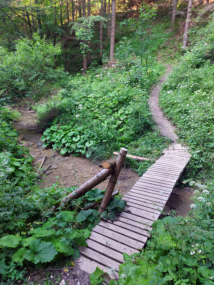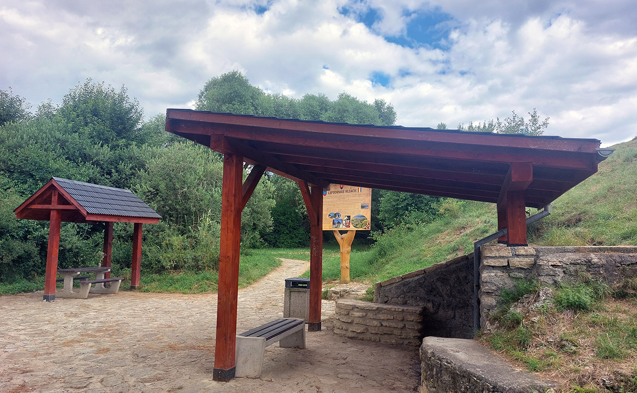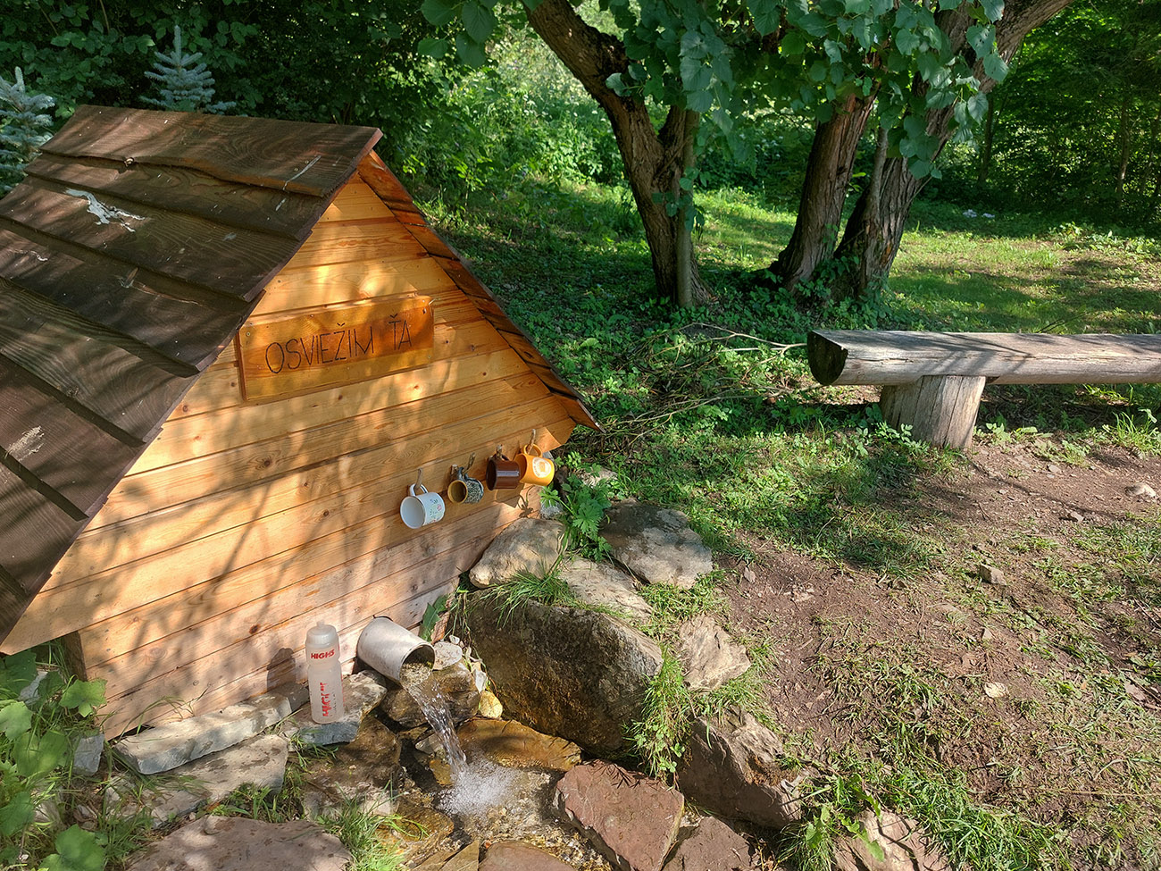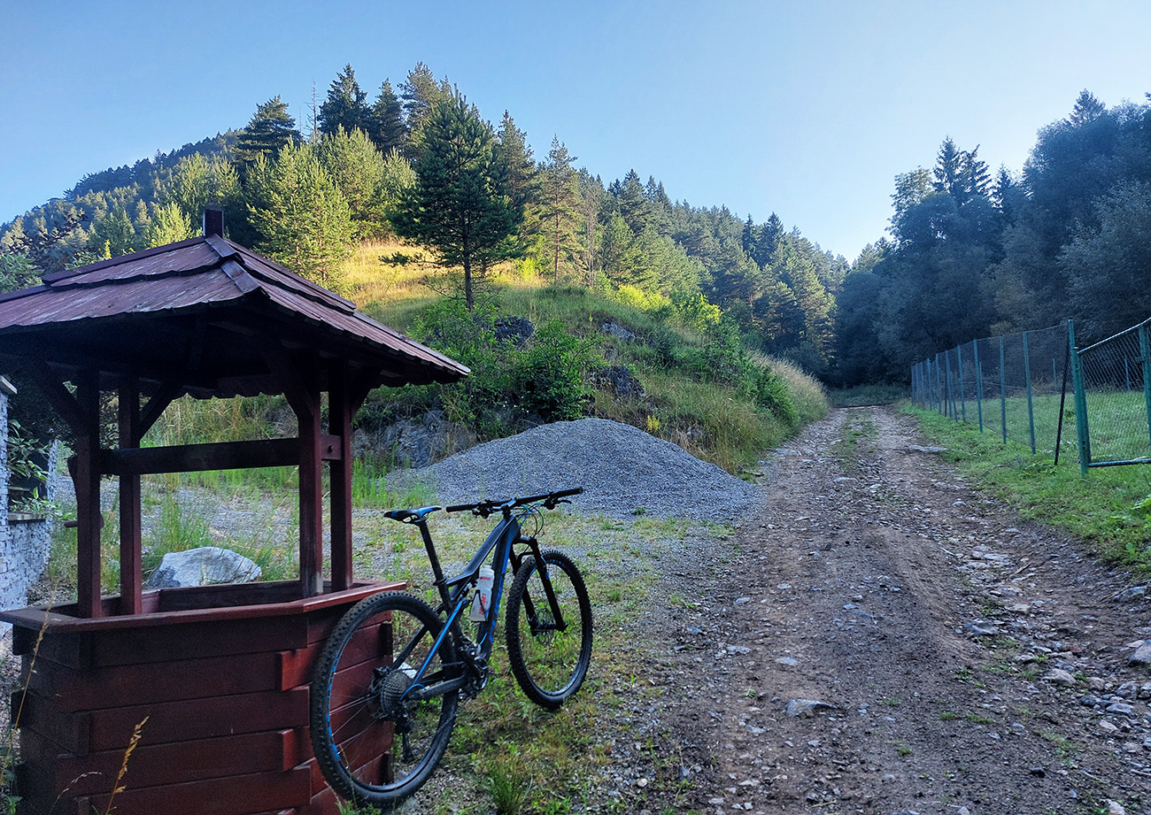 Ľupčianka je v ústí doliny už mohutnejšia, tak som pohrdol brodom, vyššie je mostík, na gpx-ku tú zachádzočku vidno. Pred Vyšným Sliačom som ochutnal miestnu minerálku – fajná je. No do bidónu som radšej netankoval, to až ďalej takú normálnu vodu, z výdatného prameňa Očianka tesne nad Štiavnicou.