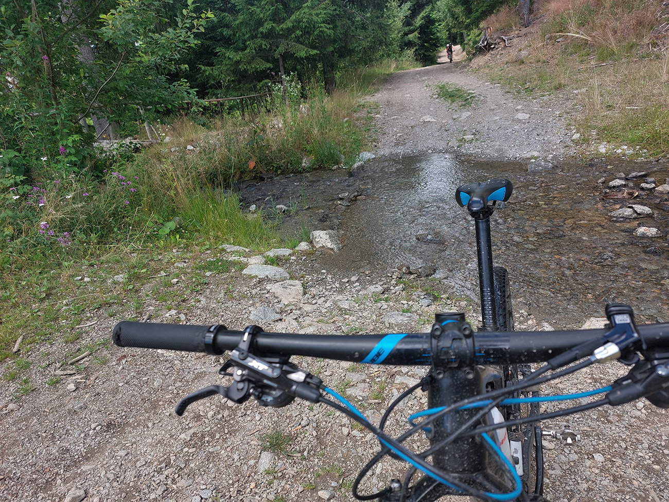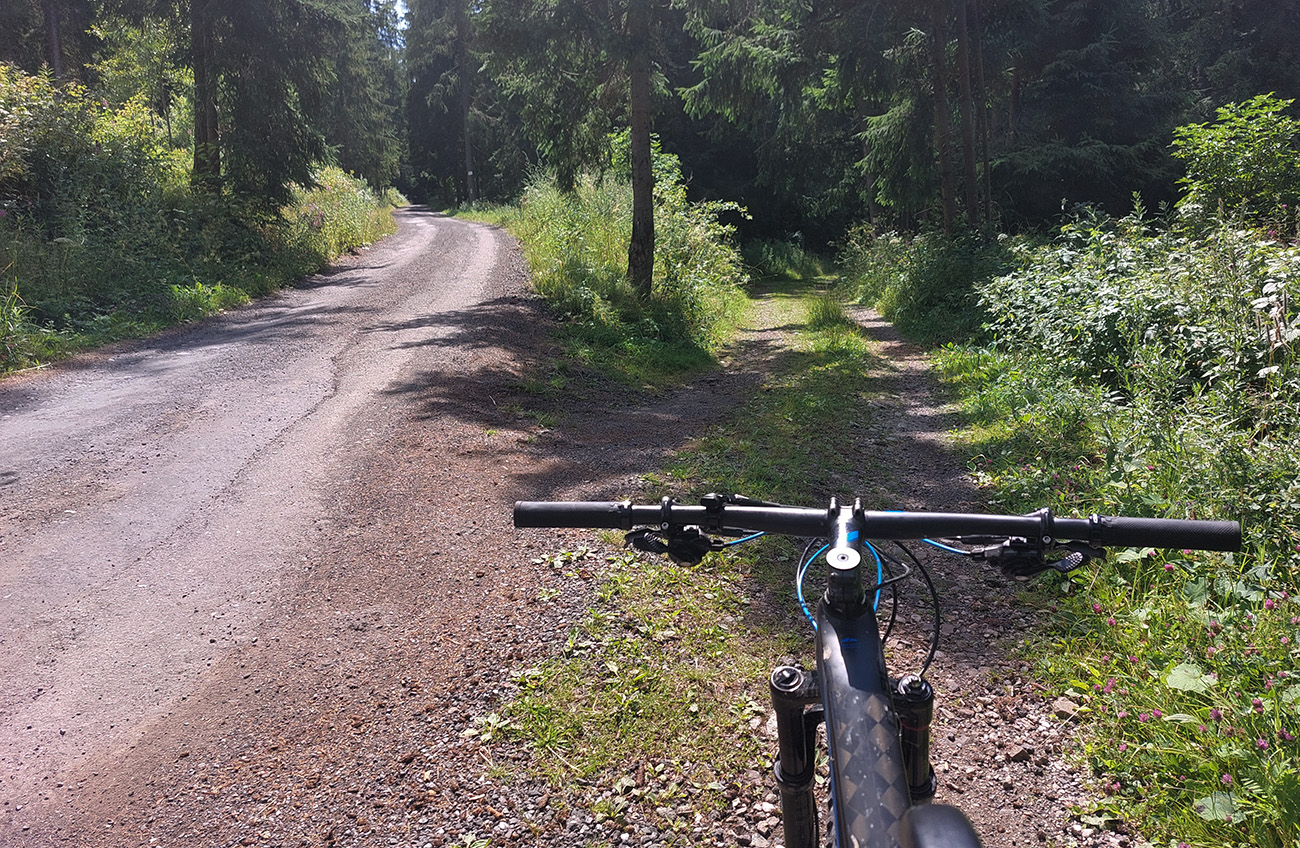 Popod Liptovský hrad (najvyššie položený na Slovensku, keby niečo) je to smerom na Liptovskú Annu jasné, ale strméééé! A po lúkach s číhajúcimi rojmi ovadov. Hore v Sedle pod Kráľovou som sa zamotal, ako som sa im snažil ujsť a zároveň nájsť začiatok zjazdu po červenej značke, v metrovej burine. Keď som našiel ten úzky chodník, už bolo dobre, len šľahúne šľahali chvíľu z oboch strán ako besné, až po lakte. Dole popri potoku naopak široká asfalto-šotolina a odtiaľ až do konca už prevažne po cyklotrasách.