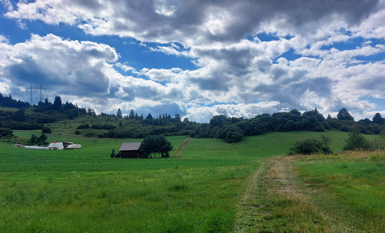 Aj Štiavnicu som obišiel, Komorníckou dolinou – tam to našťastie poznám, lebo ktovie prečo ma mapy.com odmietli tadiaľ pustiť a tlačili ma cez dedinu. To už ale bolo úúúúplné finále, lebo už len ponad to divné „drevenicové sídlisko“ Chalúpkovo do Ludrovej bolo treba, pomedzi ohradené pasienky. A z Ludrovej cez úúúplne posledný kopec, v kontraste s doterajšou krásou – pomedzi kameňolom a smetisko do Bieleho Potoka. Na horizonte vykuklo Sidorovo.