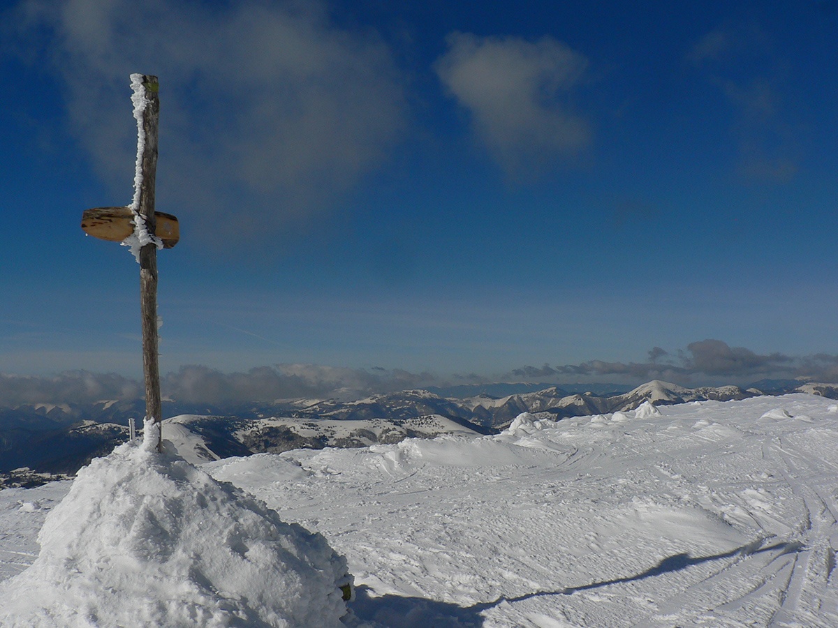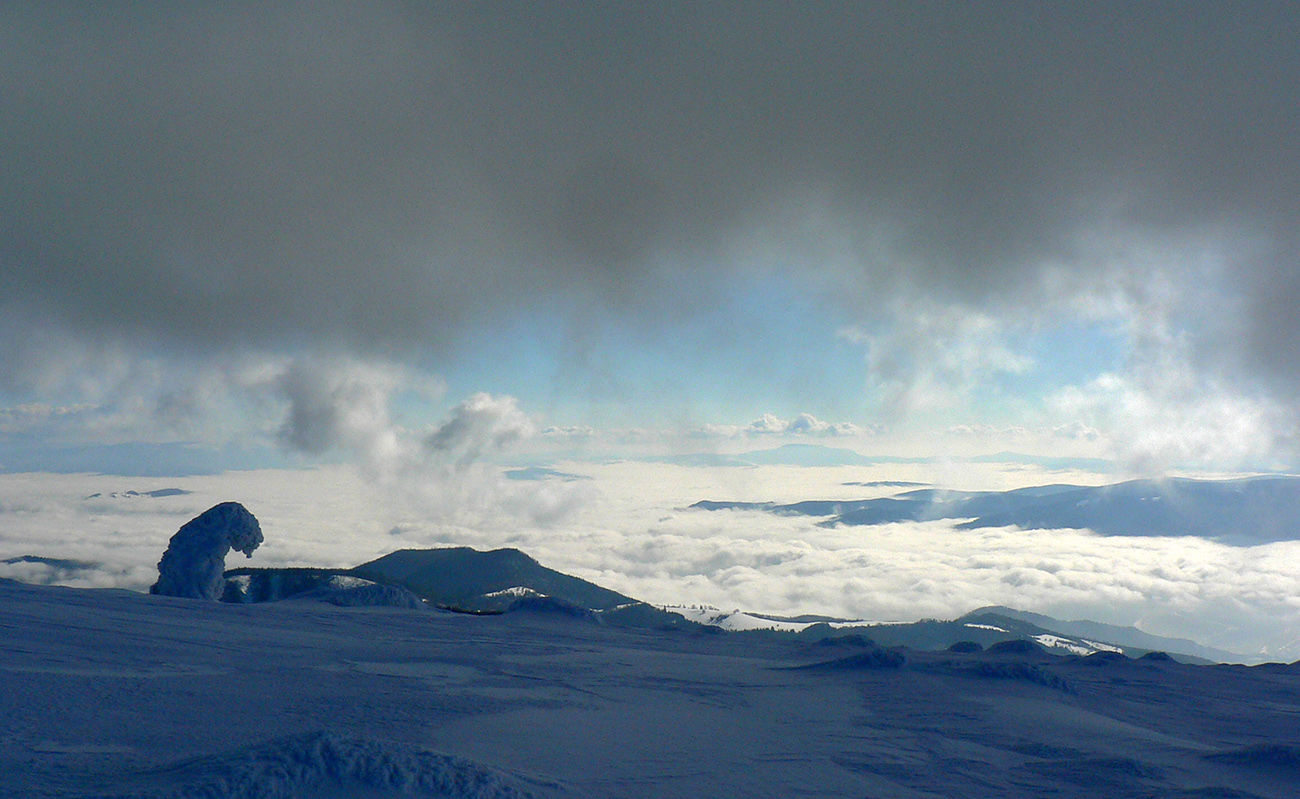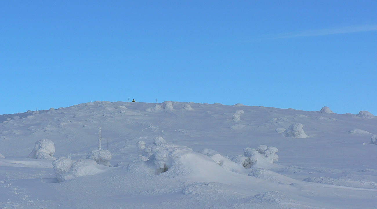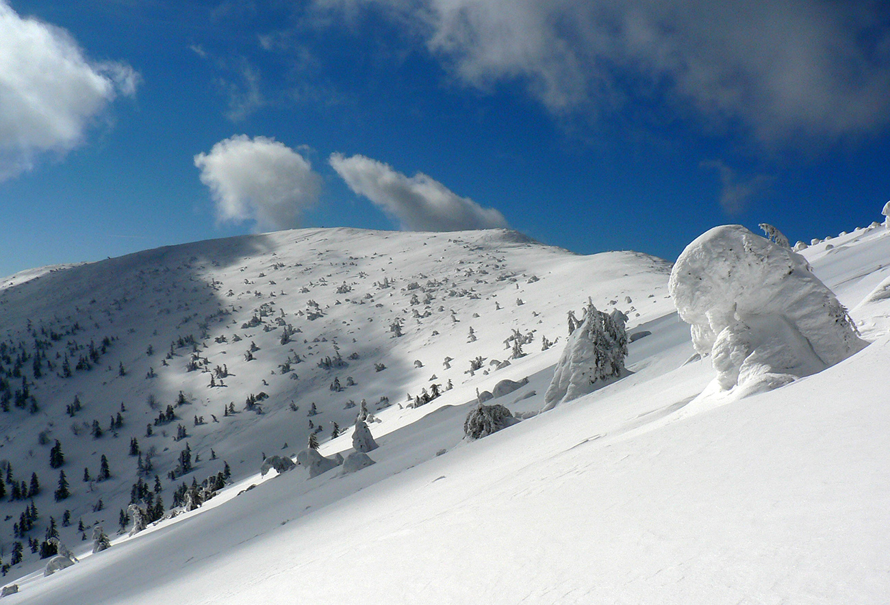 Po arktickom počasí sa zase dovalil hnusný odmäk, no prvé dni ešte vo vyšších polohách moc neuškodil. Naopak – aj dobre spravil, keď prilepil k zamrznutému podkladu nový sneh. Šialená zima, ako na hojdačke... Ale čo už. Šiel som teda vyskúšať tie vyššie polohy masívu Prašivej. Mal som viac variantov „denného programu“ podľa toho ako nohy pôjdu. Rýchlo sa ukázalo, že nejdú vôbec, tak som to nehnal po hrebeňovke, ale ostal som tam polyžovať. A dobre som spravil a nebol som sám – na starom ľade taká hutná, vetrom a už aj slnkom ubitá vrstva nového snehu, do 10 cm. To na juh. Od hrebeňa až do lesa takmer žiadny ľad. Len na hrebeni miestami trochu tvrdšie šindle, strungy, kto to už ako volá. Severy samozrejme tvrdé, vyfúkané, hrboľaté, tam som ani nešiel. Ale po nedávnom lavínovom poplachu ani stopy.
