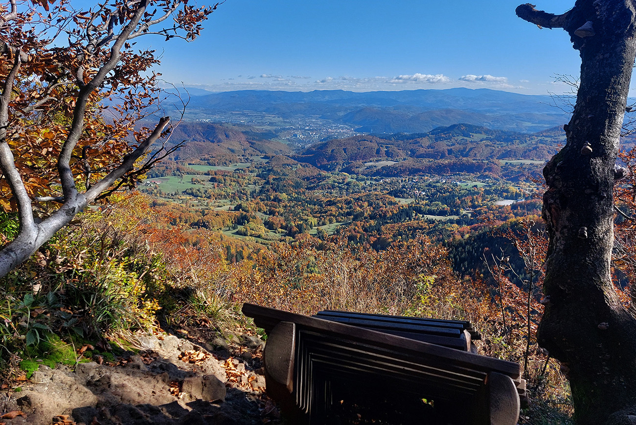 Potom smerom hore na hrebeň krátky a strmý choďák, dobrý na zmenu stereotypu. Zopár kratších chodeckých miest je samozrejme aj na hrebeni, až po Flochovú, pomedzi ne plno pekných lokalít, ako bralká pri chodníku, vyhliadky na Bystricu, samotný tunel a tak... A konečne slnko do chrbta, lebo také októbrovo nízke v tej prvej časti trochu otravovalo :-)