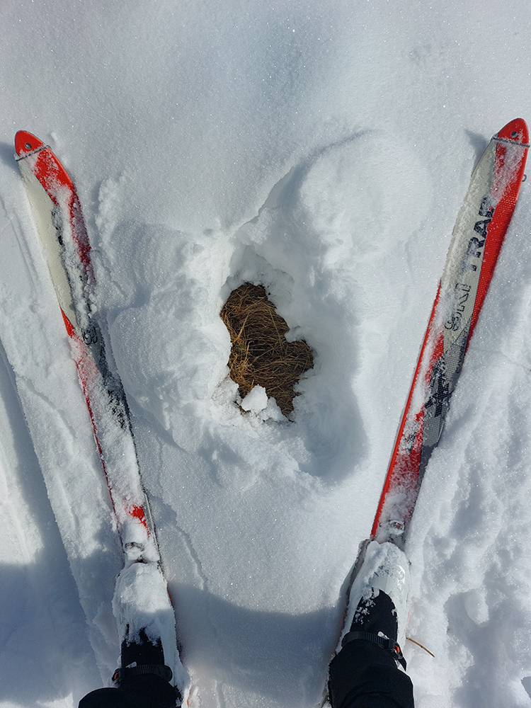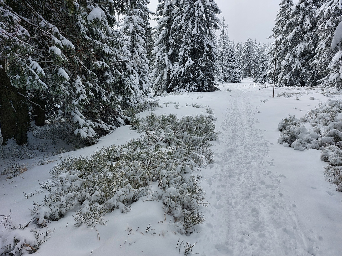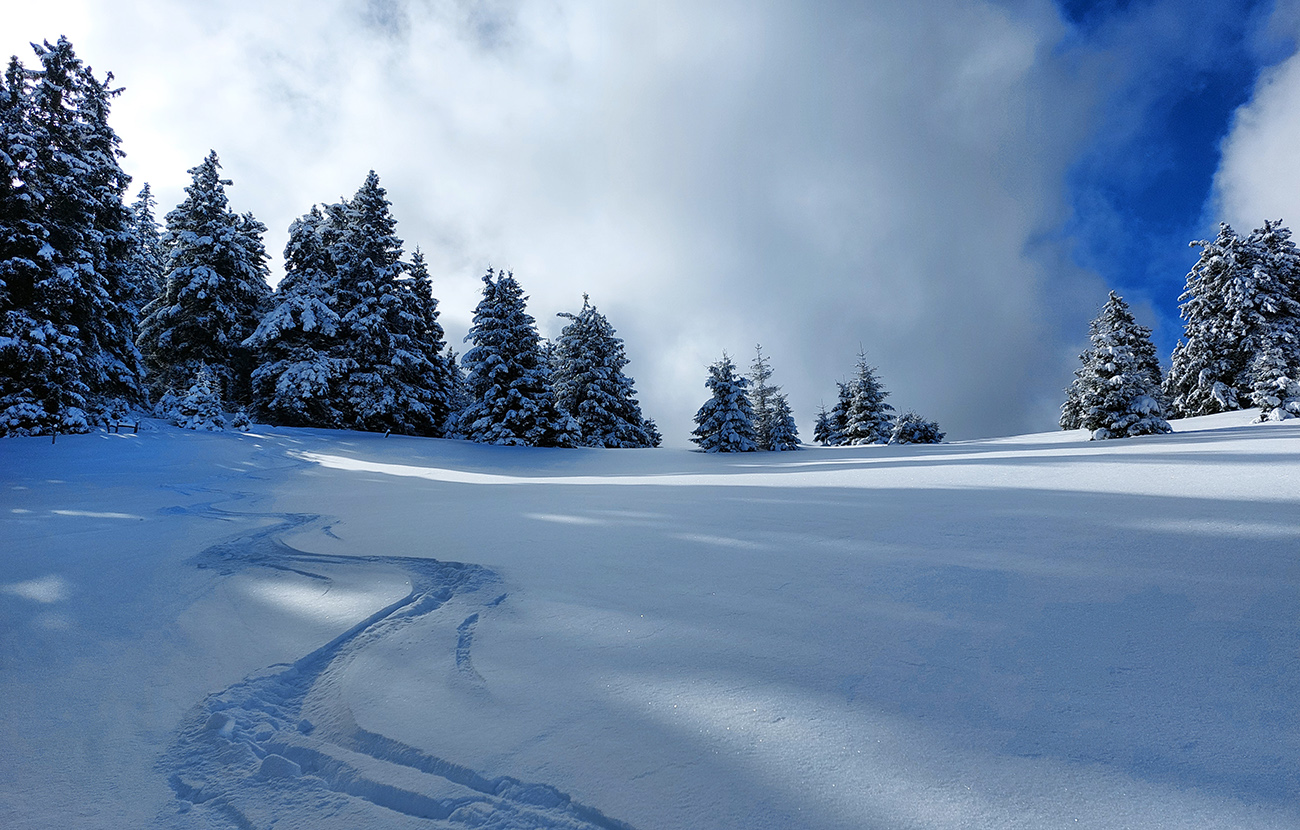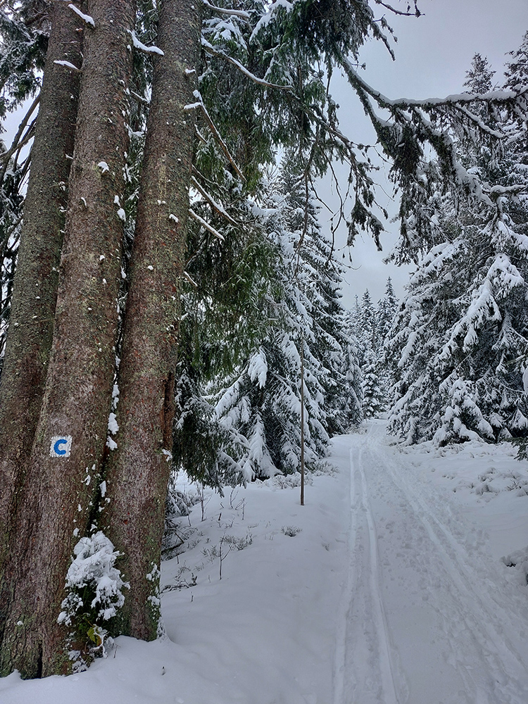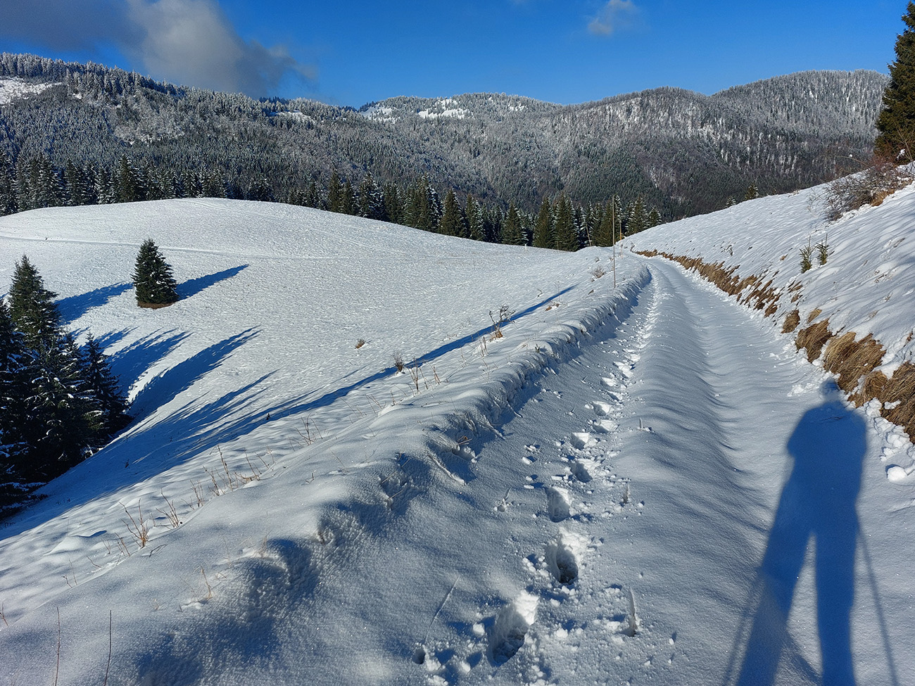 Na lúkach na cyklotrase medzi Vtáčnikom a Šiprúnskymi sedlami to vyzeralo rozprávkovo, ale hroty palíc klopali o zem a kôpky prisnežených trávových trsov žalovali o nízkej hladine snehu. Niekde naviatych aj 20 cm, no na viacerých miestach pod hustejšími korunami ledva cenťáčik a smejúce sa pirane.
