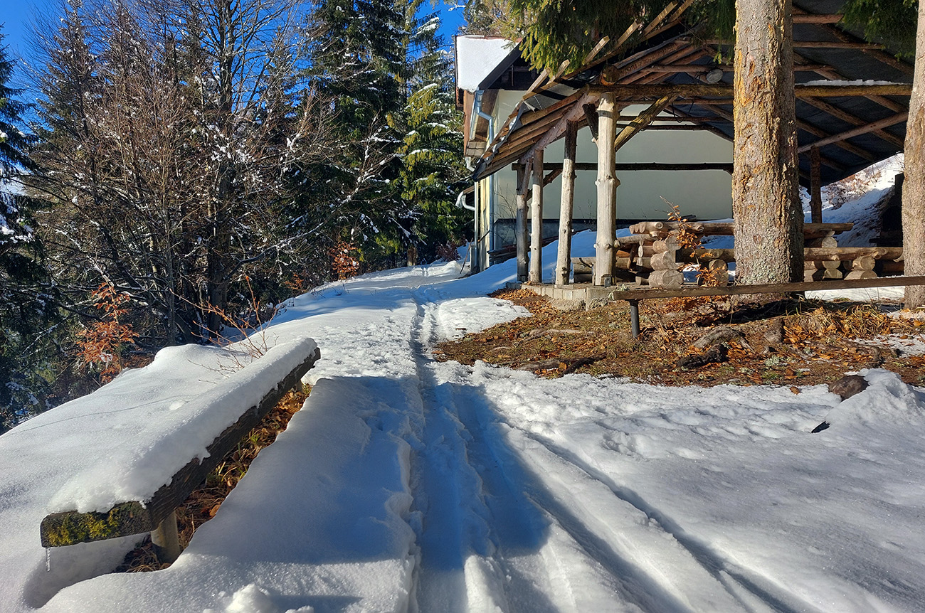 Na zjazdovku už som sa nepredieral nepreverenými chodníčkami, pekne znovu popri Mederlyčke, z ktorej už seriózne pršalo. Podľa predpovede už o deň, dva sa tade ale súvislo nebude dať prejsť, a neviem, či toto sneženie nebol jeden z posledných záchvatov tejto ozaj extrémne suchej zimy. Teda ak nenadzigá meter v apríli. Už je hádam všetko možné.