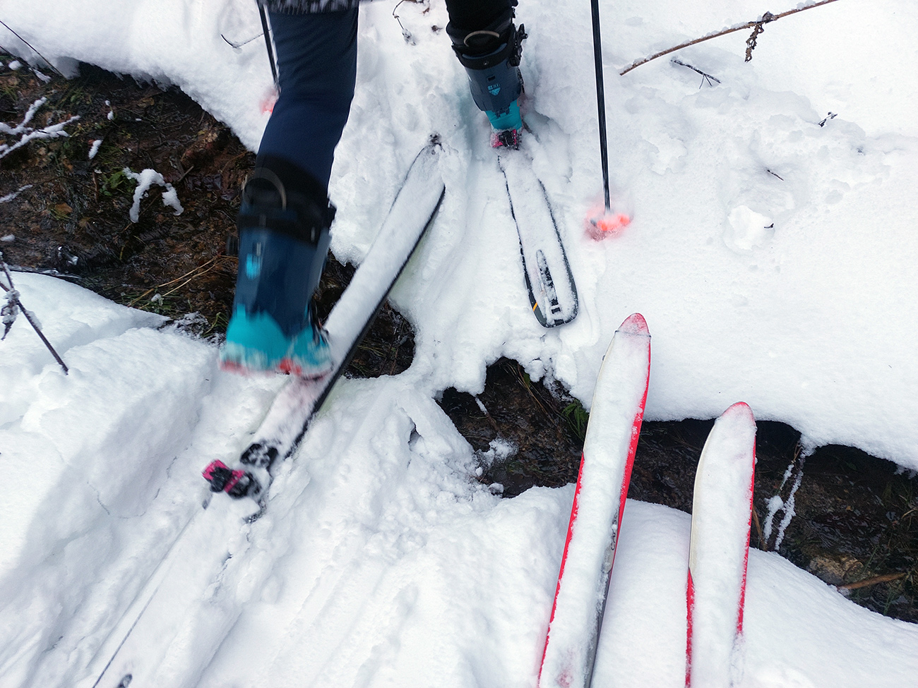 Haliny a Sidorovo na nás dohliadali pri nahadzovaní lyží na batoh, lebo po južnej stráni dole do Vlkolínca sa ani kameňačky riskovať neoplatilo. Ale zato veľkolepé výhľady na Nízke Tatry v diaľke a obielené strechy dreveníc pod nami – no čo viac si priať na rozchodenie do sezóny? Super to bolo a ďakujem modelkám za pózovanie!