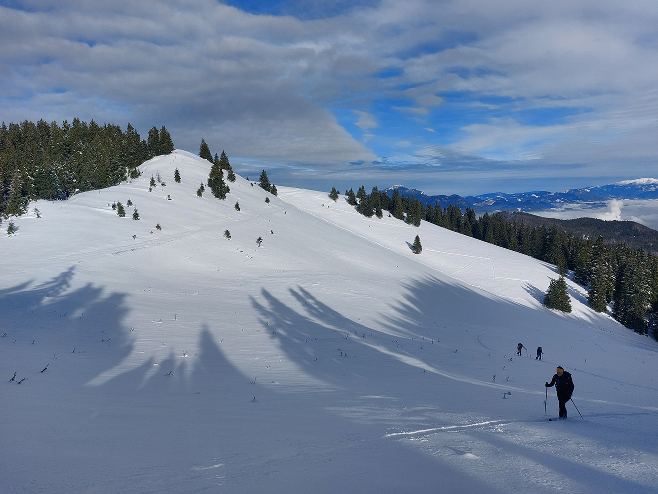 To už sme vedeli, že sme zahojení, lebo čím vyššie, tým lepšie. Tak už sa len rozhodnúť, čo ďalej. Či ťahať na Smrekovicu a nazad, alebo skúsiť pohľadať tie prášky. Vyhral druhý variant. Bola by to bomba, na začiatku sezóny si poprášiť. Navyše pod Vtáčnikom počmárané a na druhú stranu do jamy Paškovej tiež. Ale to že si necháme na koniec.