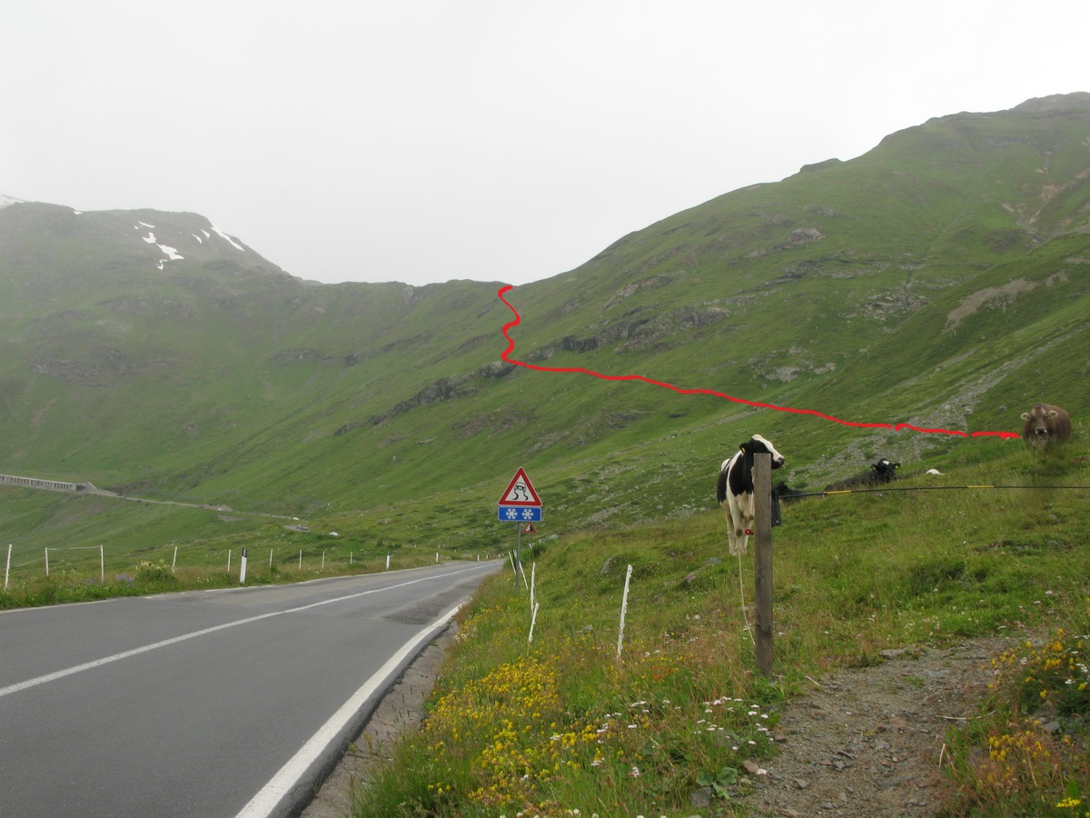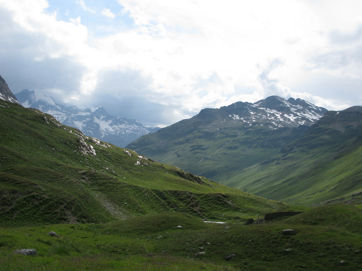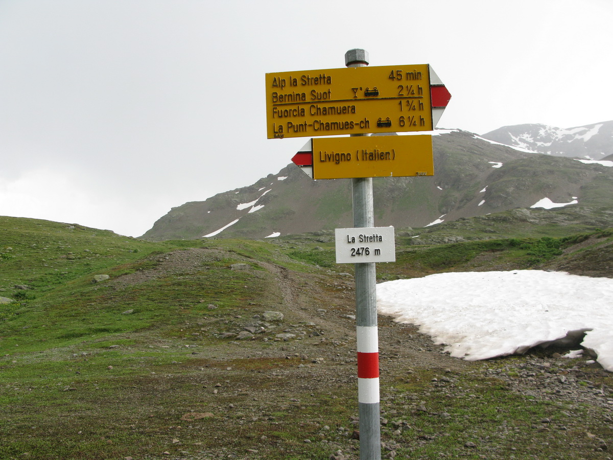 Livigno ako také už opisovať nebudem. Článkov o tejto oblasti je tu už neúrekom (odporúčam kliknúť na oblasť LIVIGNO). Samozrejme už viem kde majú super zmrzlinu, zastavím sa aj na trojuholník pizze a za mierneho dažďa vyrážam po asfaltke smerom ku švajčiarskej hranici. Na začiatku stúpania, v miestech odkiaľ už je vidieť Forcella Livigno, odbočujem z asfaltky. Čaká ma druhý dnešný výšľap, druhá tlačenica.