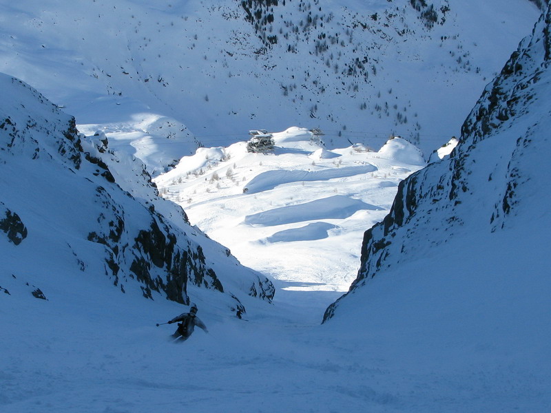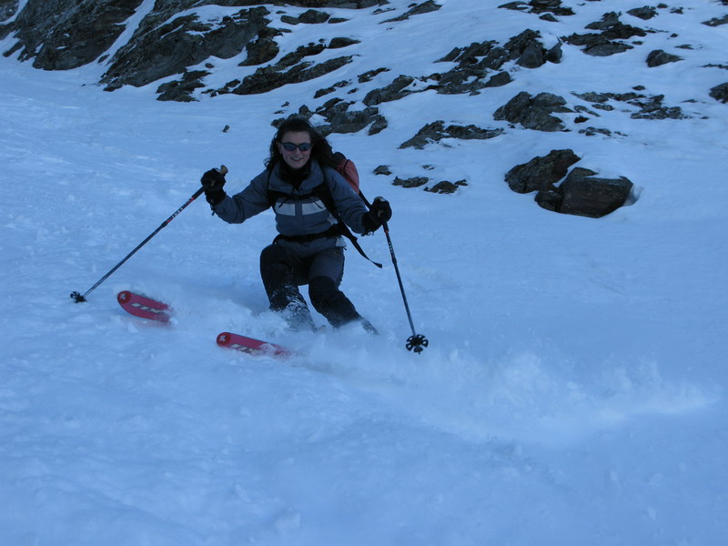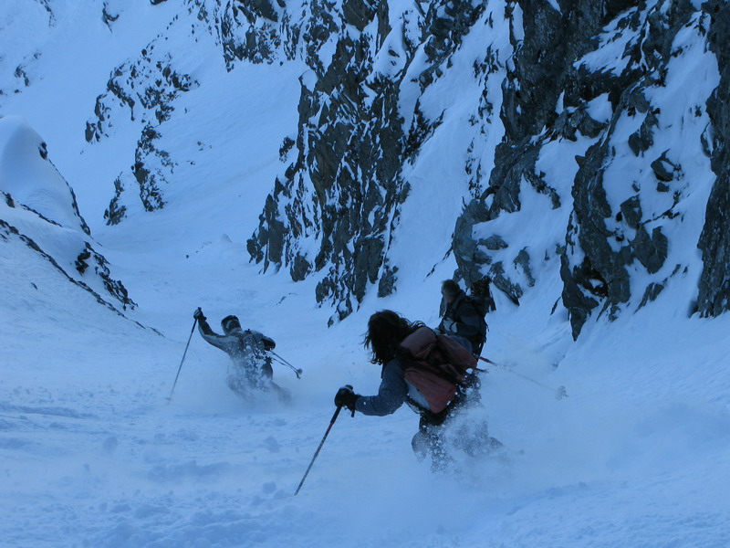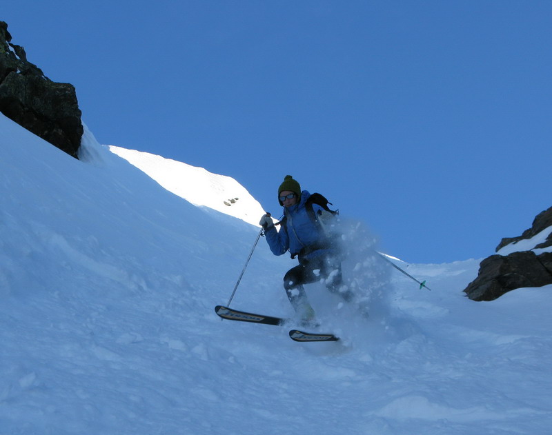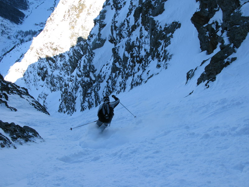 Na Madritschi ma už čakali Markéta s Hansom, pravdepodobne dvaja najaktívnejší lyžiari v celej oblasti. Stihli mi ešte ukázať stopy na Schooterhorn a so slovami sú tam naši kamaráti a chystajú sa to práve zlyžovať sme už korčulovali k sedačke. Naším cieľom bol povestný Ypsilon. Nádherný žlab, ktorý sa dá lyžovať pomocou sedačiek, čiže bez šlapania.