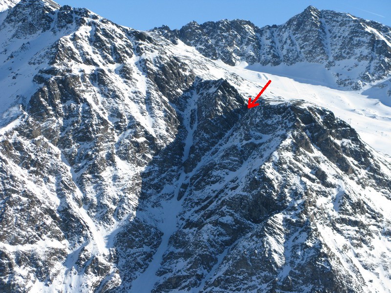 A ešte jedna dôležitá správa. Z Madritschu sme zbadali skupinku šlapajúcu juhovýchodným žlabom od Suldenu na Konigspitze. Na túto dobu je možnosť tejto túry znakom výnimočných podmienok. (foto)