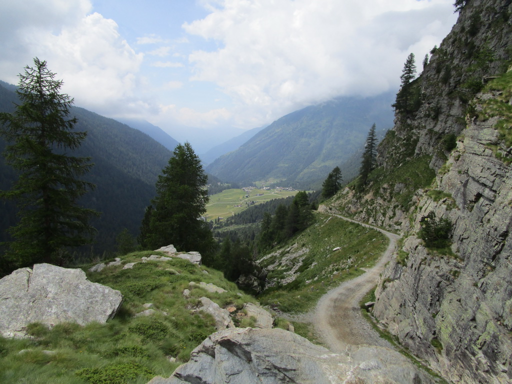 Le Prese a šípka s tabuľkou ma neomylne navádza na začiatok stúpania do Valle di Rezzola. O tejto doline mi rozprával kolega Talian v Rosegu. Posedel som pár večerov nad mapou a som konečne tu. Čaká ma zrejme najdlhšie súvislé stúpanie aké som kedy v živote išiel... Z Grosia až do sedla DellÁlpe je to cca 1800 výškových metrov. Najprv krásne a strmé asfaltové serpentíny. Neskôr betónová a kamenná cesta s priemerným 18% stúpaním a v závere už šotolina prechádzajúca do turistického chodníka prekopaného do kvalitného bajkového trailu. Som rád, že som touto dolinou šlapal hore aj keď ísť ňou dole by tiež nemusel byť zlý nápad. Cestou hore si ju ale človek lepšie obzrie a obzerať veru bolo čo...