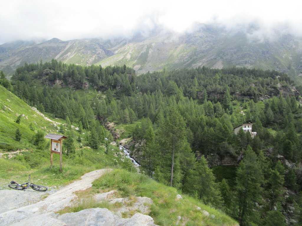 Prvé stúpanie mám za sebou a zjazdujem na taliansku stranu do Val Violy. Odbočujem už v lese doprava smer stúpanie na passo Verva. Raz som už ním kedysi šiel. Viem, čo ma čaká. Štrková cesta a v hornej časti už aj ťažšie zerodované úseky. Ale v pohode všetko v sedle.