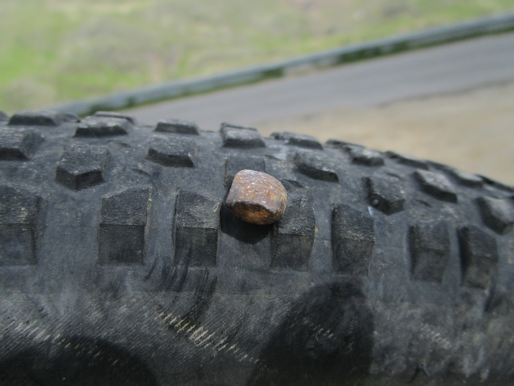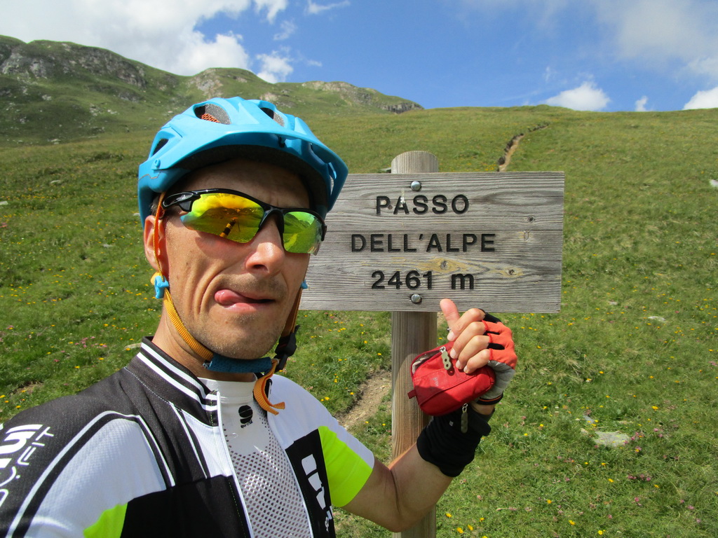 Passo Dell´Alpe je pre mňa novinkou z dnešných sediel. Zjazdujem krásnym a ťažkým singlom až po asfaltovú cestu vedúcu na passo Gavia. Ťažké rozhodovanie. Času ubúda. Šlapem ale smer Gavia. Už mi veľa nechýba keď odrazu ten známy pocit. Zadné koleso sa správa nejak čudne - defekt. Kurnik ako to je možné? Veď som si dával taký pozor. Tlak v kolesách som mal oveľa väčší ako by bolo do terénu vhodné ale zas tie asfaltové úseky tam sa mi to oplatilo a defekt som fakt nemal prečo dostať. Zastavím a pozriem na plášť: klinec jak hovado....