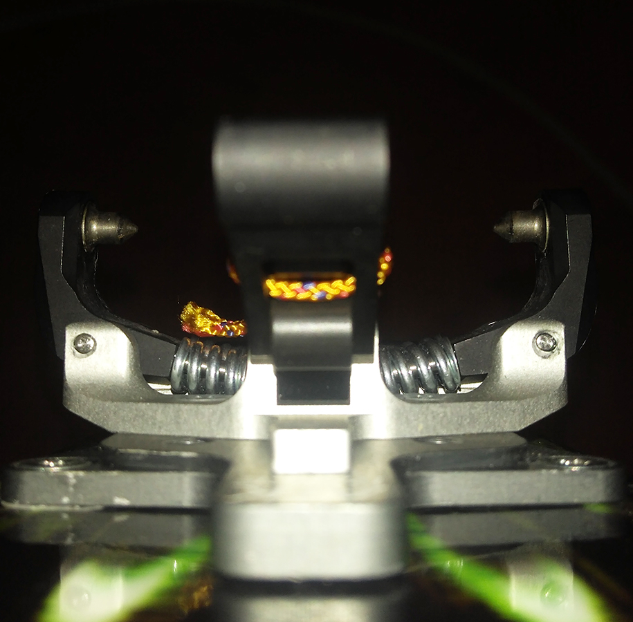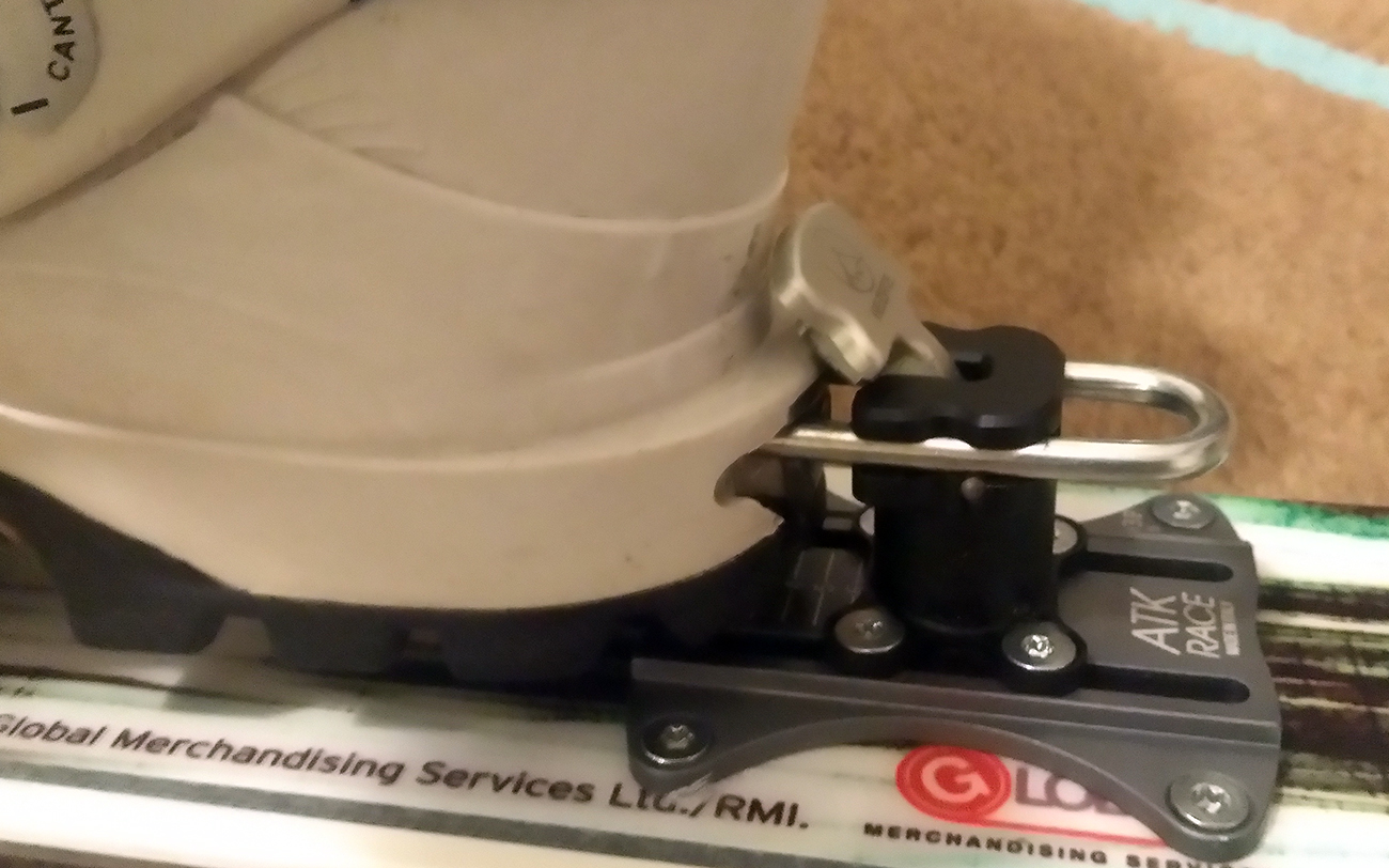 Plocha podstavy špičky má na šírku iba 5.2 cm, čo prekvapivo umožnilo použiť aj staršiu verziu rozširovacej položky pre XXL lyže, konkrétne podložku ATK R03 A a P, ktorá má šírku 5.1 cm (novšia ATK R08A už má šírku 6 cm). Ramená prednej časti (s čeľusťami) teda v podstate visia vo vzduchu a spoliehajú sa na pevnosť v ohybe 4-5 mm hrubej, no umne tvarovanej a hojne frézovanej hliníkovej zliatiny. Staré dobré TLT-čko to zvládalo s 2mm hrúbky ťahanej ocele, ale na plastovej podložke 6 cm širokej. Tu vidno, resp. je možné si domyslieť dizajn a pevnostné charakteristiky, ktoré musí viazanie ako celok spĺňať, aby všetko fungovalo ako má, ideálne aj viac rokov a ešte aj s bezpečnostnými rezervami.