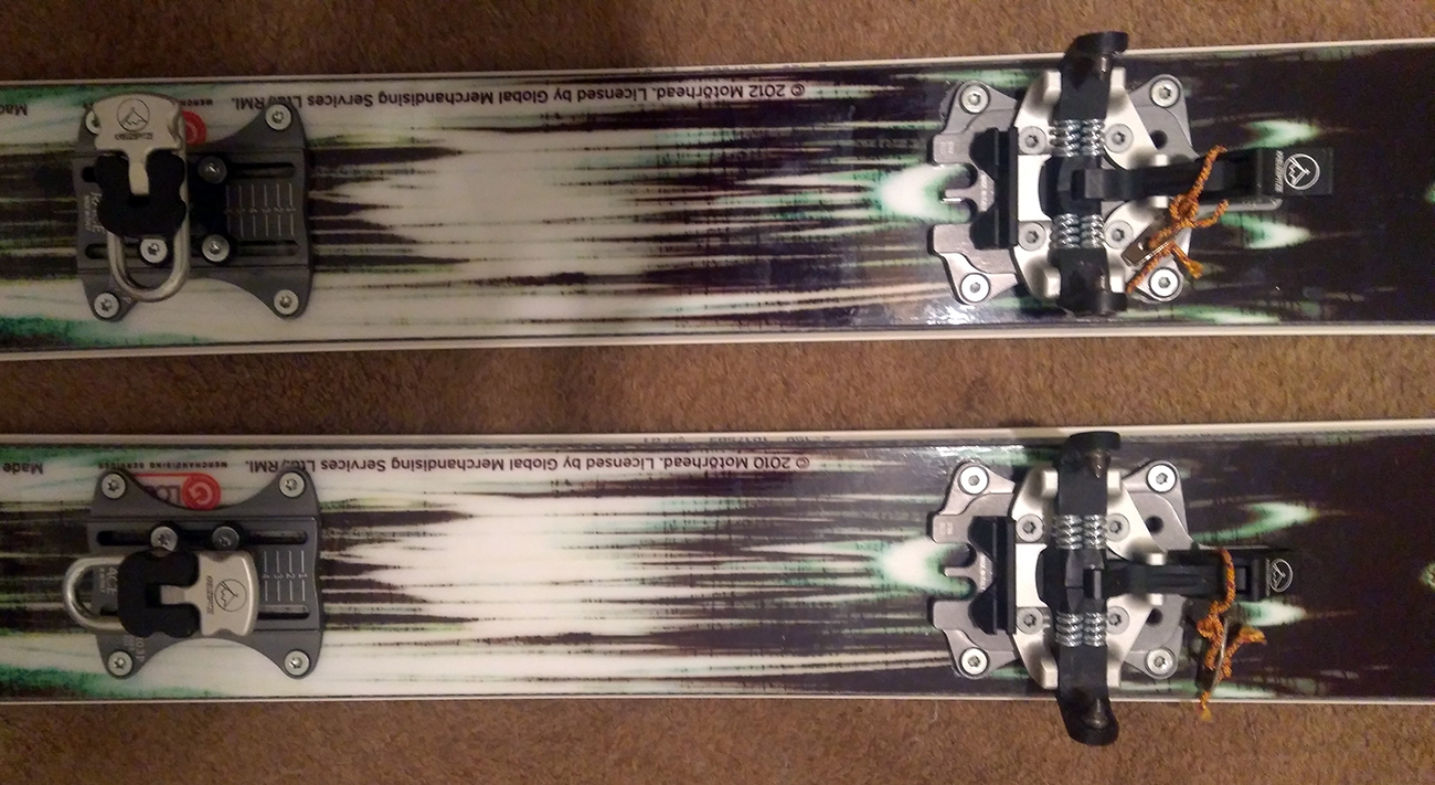 Viazanie som použil na trošku špeciálnu kombináciu. U ATK som zbadal, že ich ambasádor Cala Cimenti použil ATK Trofeo (de facto rovnaká trieda) na širokých XXL podložkách na širokej lyži a celý komplet použil na zlyžovanie Gasherbrumu VII (link TU ). Tak reku keď to funguje overené v takýchto extrémoch, tak snáď to pôjde aj na našich kopcoch. Fotky teda zobrazujú Kreuzspitze SCTT montované na podložkách ATK XXL R03 AP a podložky sú vŕtané (rozteč 6x6cm) do lyží Head špeciálnej edície Motörhead Rock n Roll (šírka 92 mm v strede). Pri doterajšom (síce krátkom) použití sa nevyskytol žiadny problém s viazaním v tomto kombe. Všetko hrá ako má: ľahko, rýchlo, jednoducho.