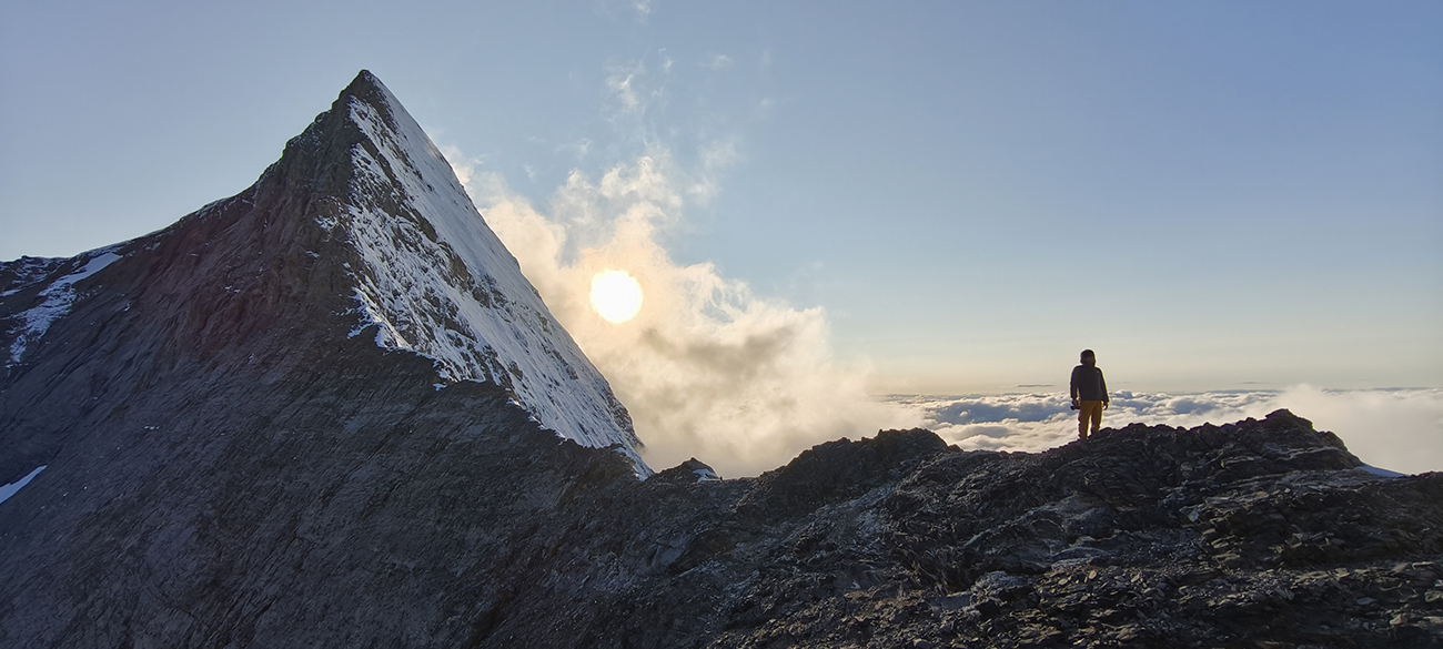 Večer som si predstavoval trochu ináč. Výstupový hrebeň Mittellegi na Eiger vyzerá na veľa miestach zasnežene, zostupový južný je pod snehom komplet, a namiesto vysedávania v teple a ťahania rozumov od chatárky preberáme zajtrajší deň popri topení snehu len s rovnako (ne)skúseným párom. Mobil radšej vypínam, aby som ušetril zbytok baterky, a internetové múdra sú tým pádom už nedostupné. Som skeptický, ale možno som len hladný a unavený. A skutočne, po tých biednych cestovinách s pestom ma skepsa prejde, a namiesto toho nasajem optimizmus mladého páriku. Koniec koncov, nikomu z nás sa nechce vracať sa naspäť tou rampou, a najmä tým nebezpečným rebríkom, nie?