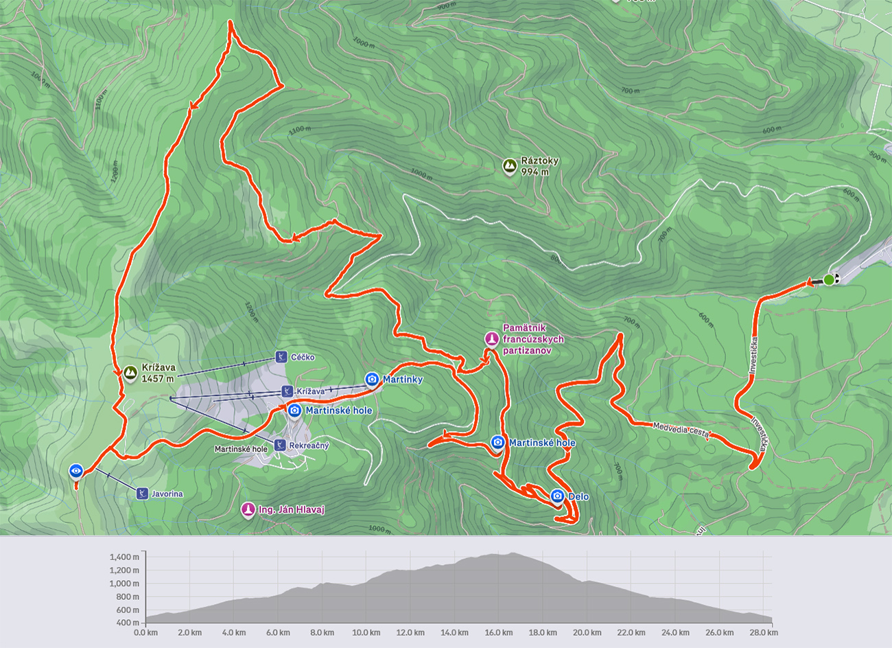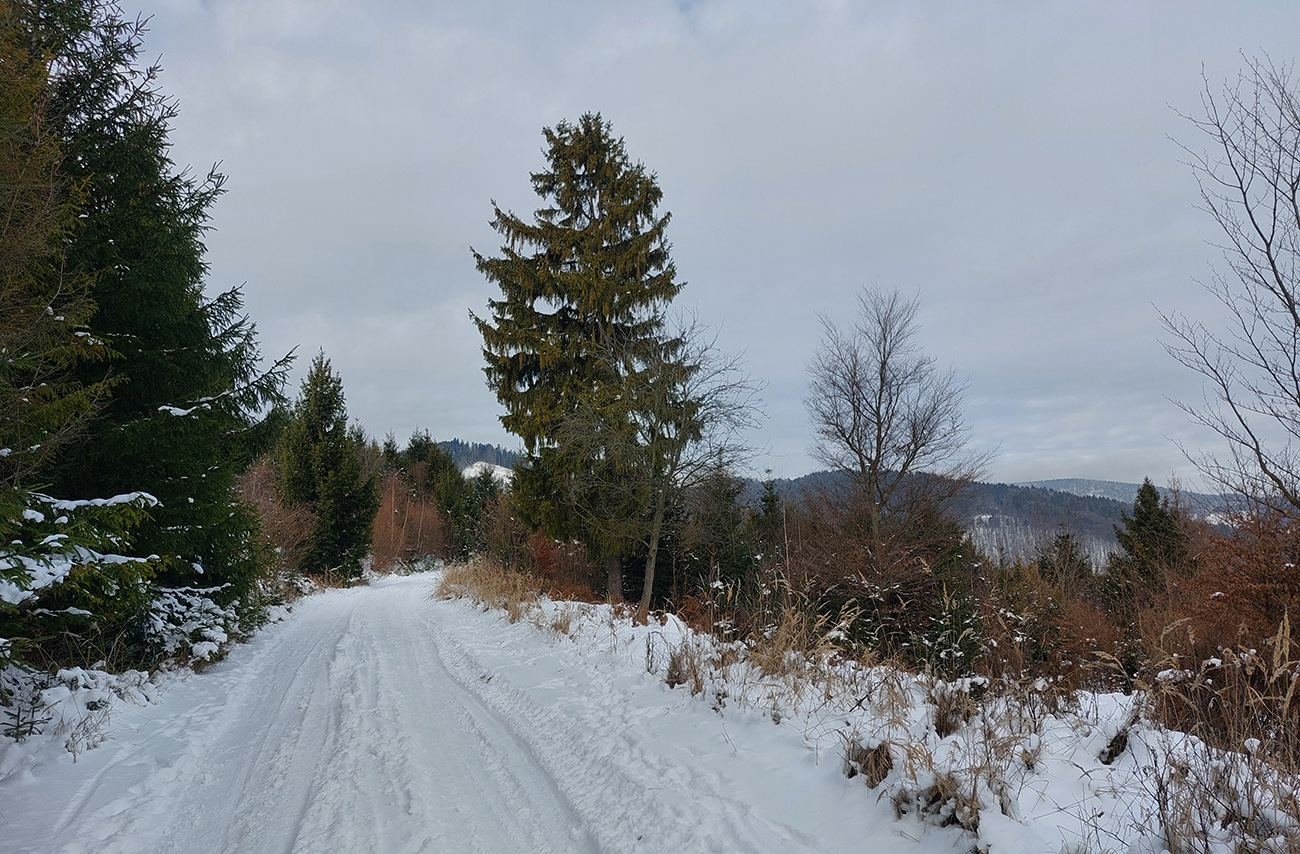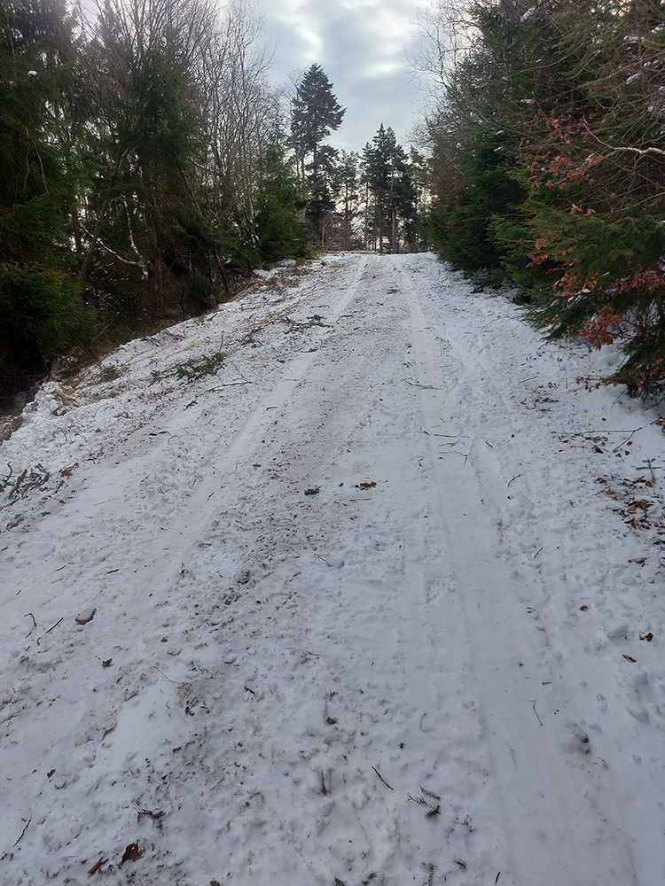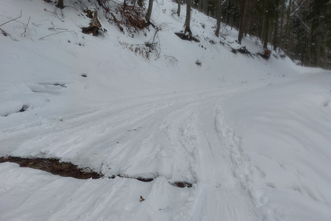Takže investička na pohodu, len za prvou zákrutou a za tým spomenutým krmelcom treba opatrnejšie, no dá sa v stopách po autách aj stredom. Potom odbočka doprava na Medvediu cestu a komfort v dvoch tvrdých stopách alebo v mäkšom strede pokračuje, v podstate až kým sa cesta nenapojí na serpentíny pod Hodinovkou (pod delom).