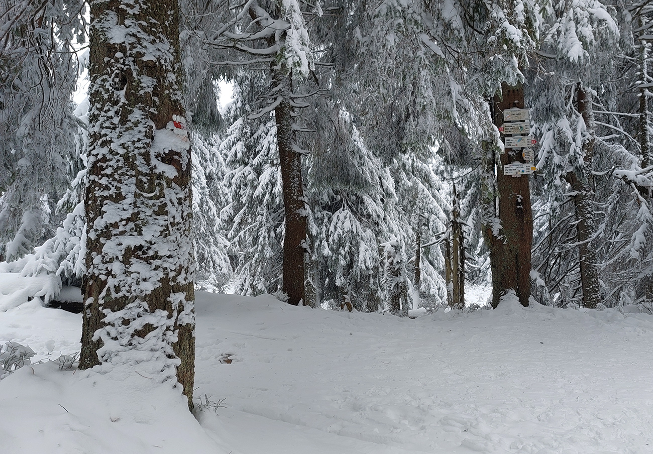 Potom nastal ten experiment, lebo som zo serpentín odbočil k pamätníku francúzskych partizánov (fajná cesta), že od neho starým chodníkom prerazím vyššie na asfaltku – lenže tam je to také zarastené, že už žiadny "partizánsky frírajd" nehrozí, ani keby neviem koľko napadalo. A to nie je tak dávno, čo sme tade dole jazdili. Tak som sa tam trochu zasekal v mladine – teba ísť od pamätníka pár metrov na sever, po zjazdárskom singli.